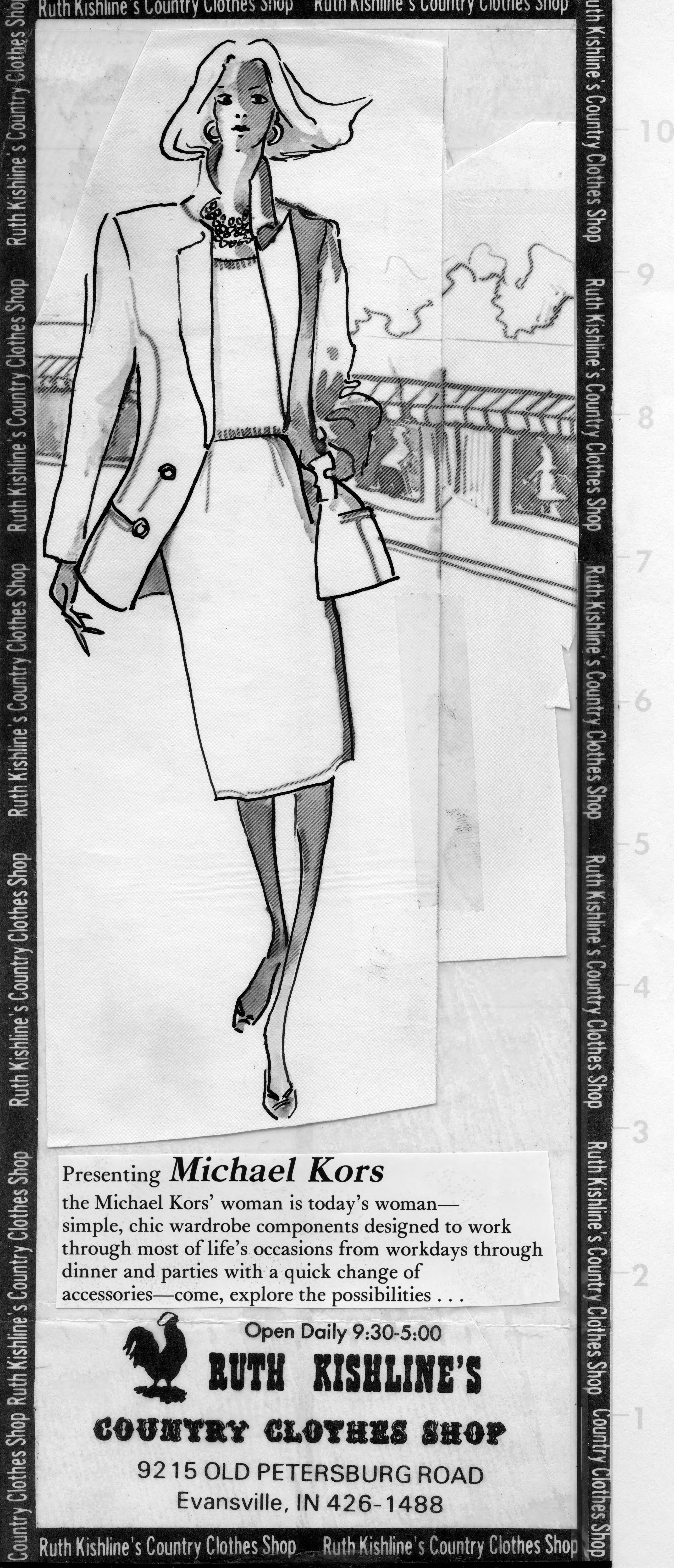Sketch of a woman wearing a business jacket with skirt and top. � Michael David Kors (born Karl Anderson Jr.; August 9, 1959) is an American fashion designer. He is the chief creative officer of his brand, Michael Kors, which sells men's and women's and ready-to-wear, accessories, watches, jewelry, foot This is the cut out of the advertisement, and the copy reads, Presenting Michael Kors. the Michael Kors' woman is today's woman--simple, chic wardrobe components designed to work through most of lifes occasions from workdays through dinner and parties with a quick change of accessories--come, explore the possibilities. The text also includes the name of the store, the address, and regular hours. The date of February 14, 1988 is stamped on the back. � Michael David Kors (born Karl Anderson Jr.; August 9, 1959)[2] is an American fashion designer. He is the chief creative officer of his brand, Michael Kors, which sells men's and women's and ready-to-wear, accessories, watches, jewelry, footwear and fragrance. Kors was the first women's ready-to-wear designer for the French house Celine, from 1997 to 2003. On January 2, 2019 Michael Kors Holdings Limited officially changed its name to Capri Holdings Limited (NYSE: CPRI), of which Michael Kors is the Honorary Chairman and Director. Michael Kors, Jimmy Choo and Versace are the three founder-led brands under Capri Holdings Limited.�