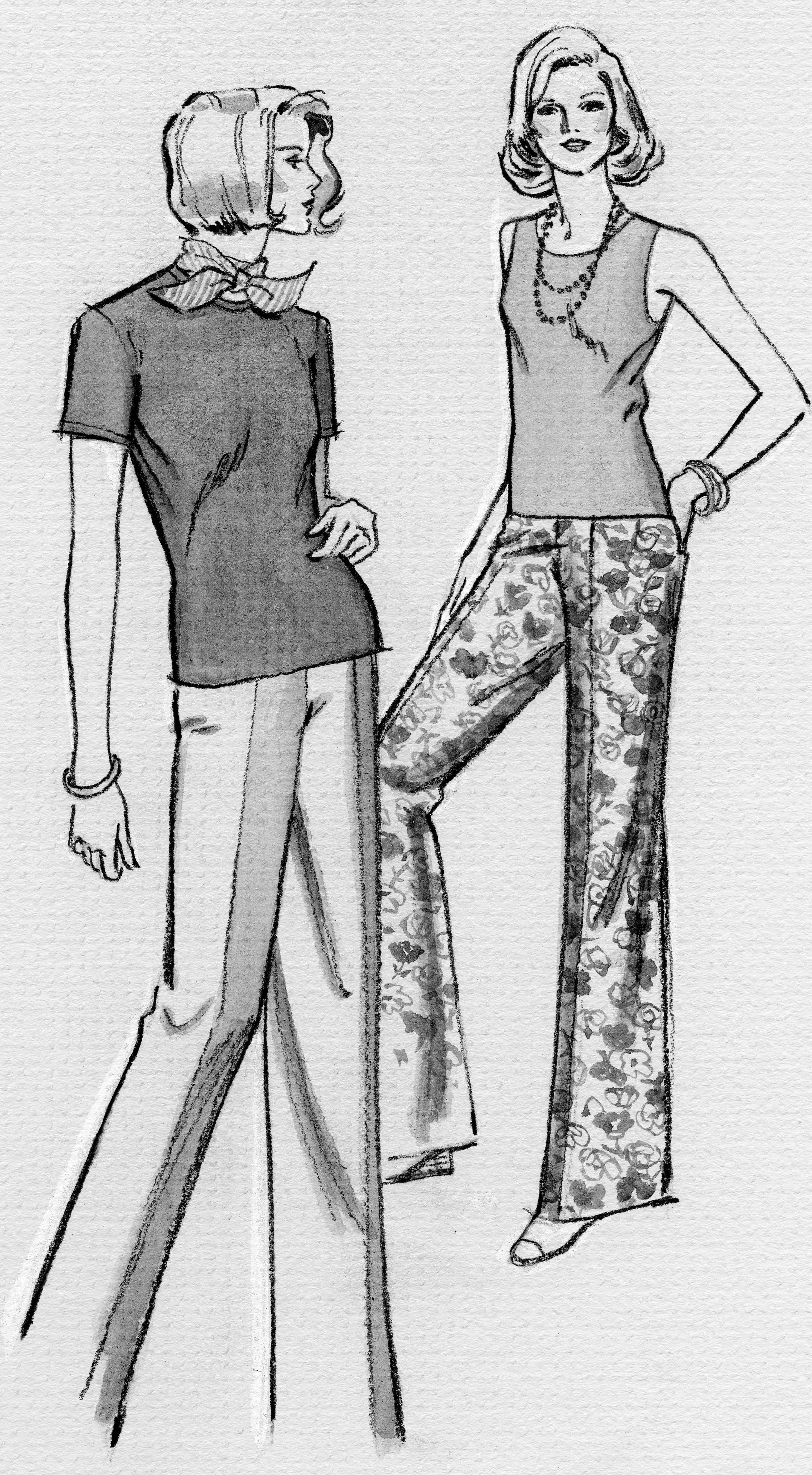 Sketch of two women wearing T-shirts (one sleeveless) with pants. This is just a sketch directly on board. On the rear is a K-C Art Files property stamp.