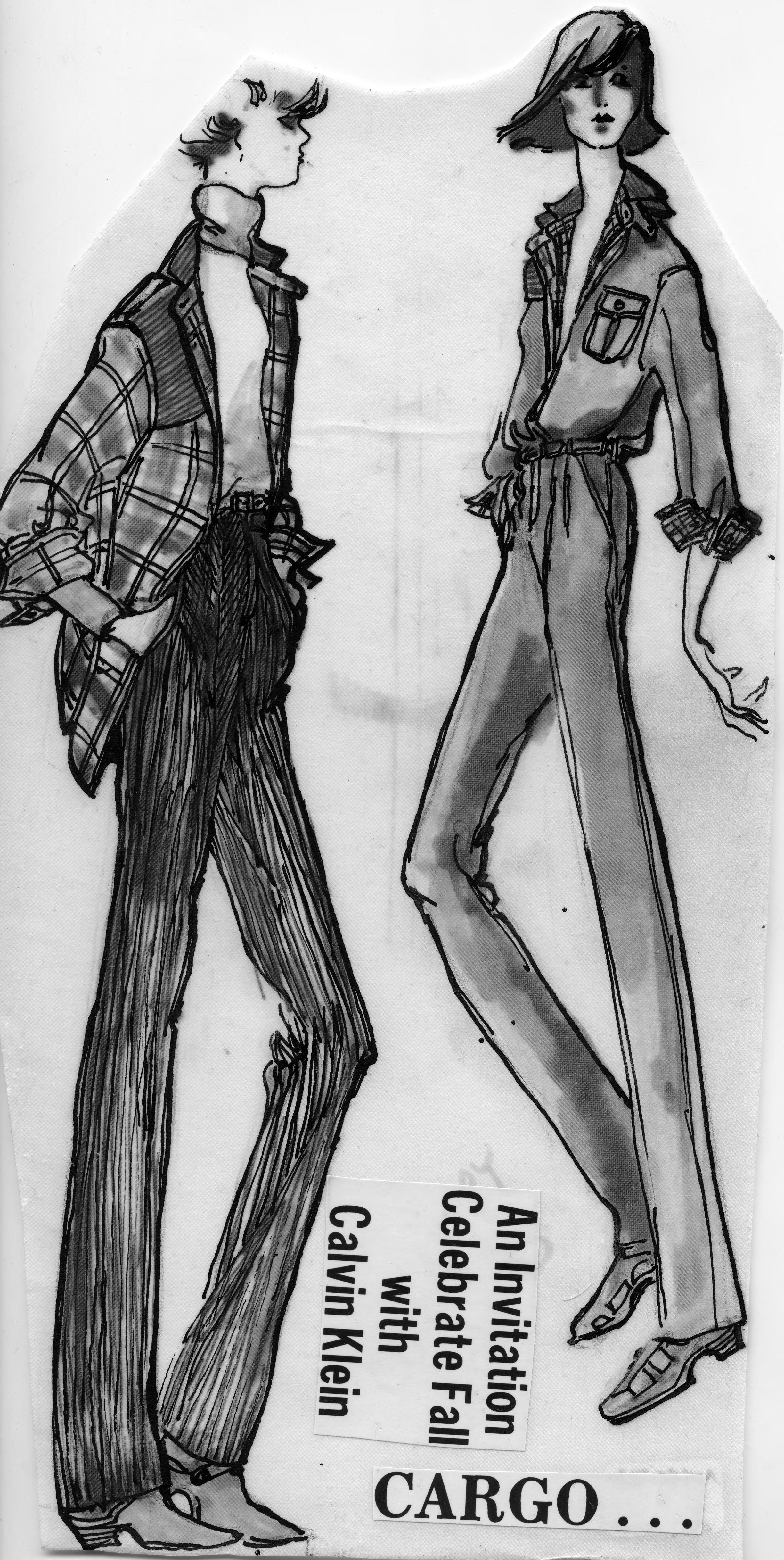 Sketch of 2 women wearing pants and blouses as jackets with a turtleneck and another top. This is the cut out of the advertisement, and the copy reads, An invitation celebration Fall with Calvin Klein Cargo� NOTE: This is the cut out of the advertisement, but it is not mounted on board as others are. Calvin Klein is a global lifestyle brand that exemplifies bold, progressive ideals and a seductive, and often minimal, aesthetic. We seek to thrill and inspire our audience while using provocative imagery and striking designs to ignite the senses. After nearly 50 years, Calvin Klein continues to be a cultural catalyst across the globe by embracing tension, sparking ideas and creating unforeseen realities. We believe in a culture that provokes discovery and brave thinking. We strive to make a positive impact on the world. We inspire passion in our people. We embody authenticity and embrace individuality. Founded in 1968 by Calvin Klein and his business partner Barry Schwartz, we have built our reputation as a leader in American fashion through our clean aesthetic and innovative designs. Global retail sales of Calvin Klein products exceed $8 billion in 2015 and were distributed in [over] 110 countries. Calvin Klein employs over 10,000 associates globally. In 2003, we were acquired by PVH Corp., one of the largest apparel companies in the world. With a history going back over 130 years, PVH has excelled at growing brands and businesses with rich American heritages, becoming one of the largest global apparel companies. We have over 30,000 associates operating in over 40 countries with over $8 billion in revenues. We own the iconic Calvin Klein, Tommy Hilfiger, Van Heusen, IZOD, ARROW, Speedo*, Warner�s and Olga brands and market a variety of goods under these and other nationally and internationally known owned and licensed brands. (https://explore.calvinklein.com/en_US/corporate)