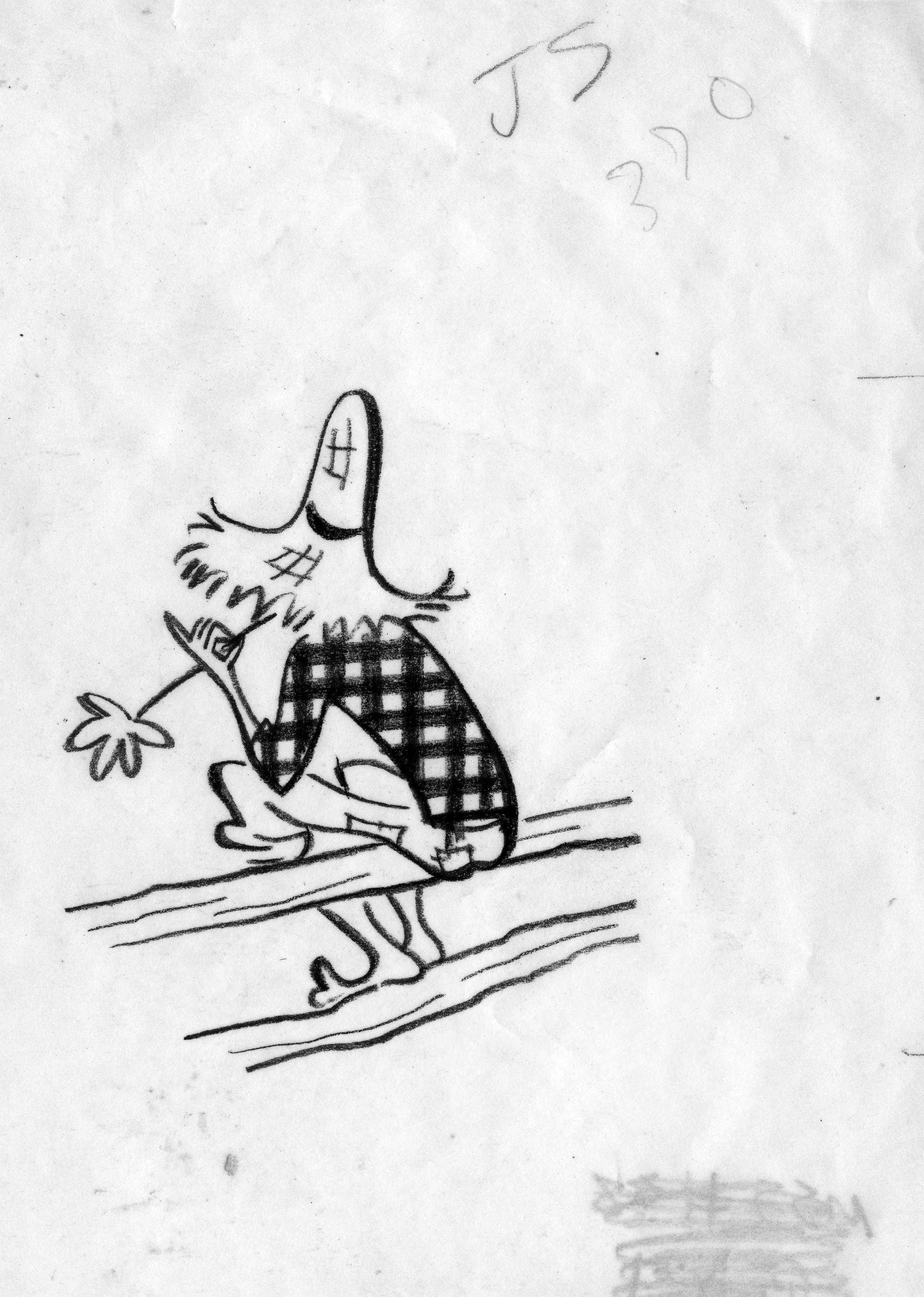 Sketch of a hick on a fence, chewing on a piece of grass. This is just a sketch, and it not mounted on board as are others in the collection.
