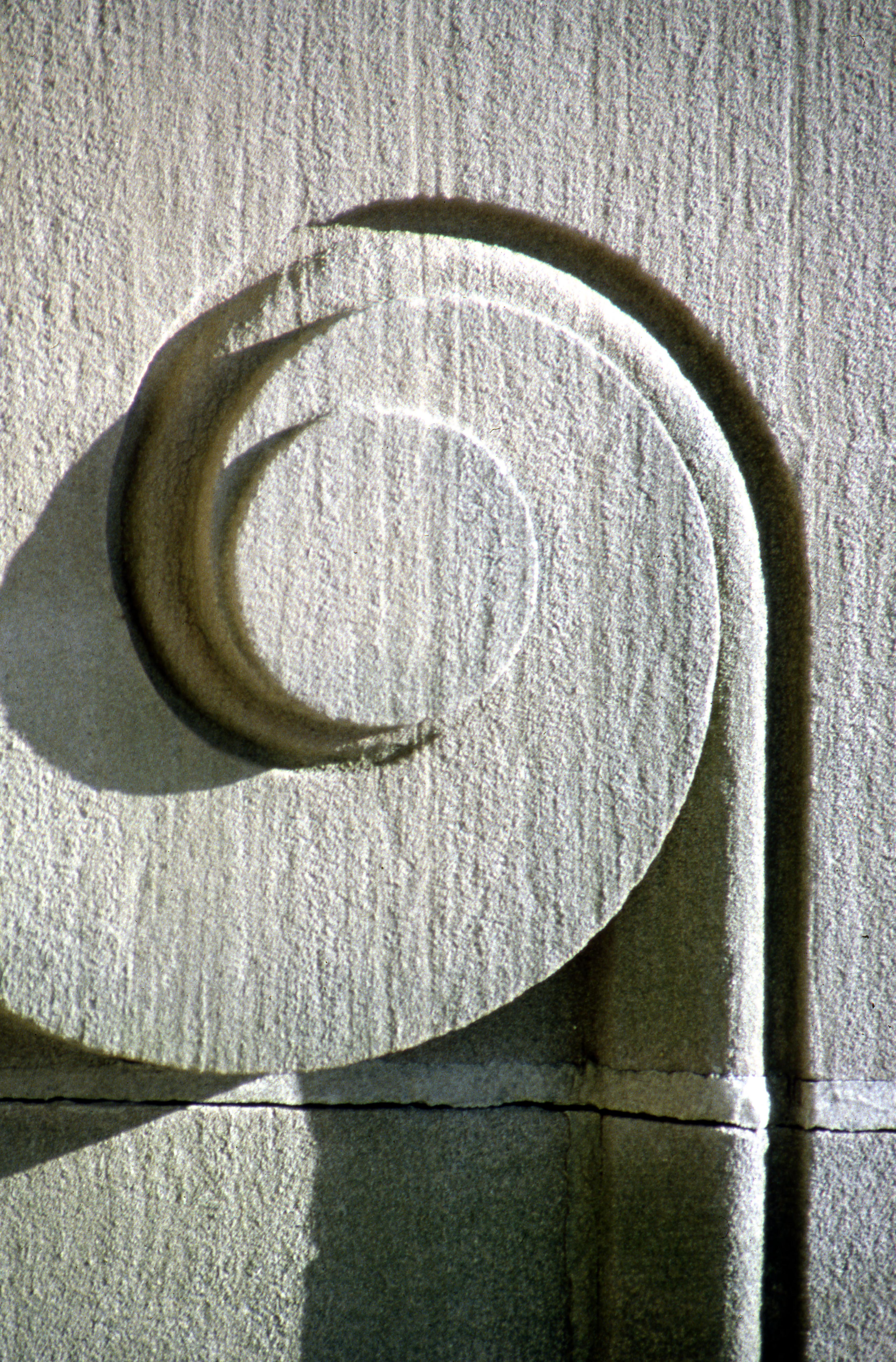This Vanderburgh County Courthouse at 201 NW 4th St. was completed in 1890. The building still stands, but is now referred to as the old courthouse, as government offices moved into another building in 1969. (It would not have served as a courthouse at the time of this photograph.) The courthouse spans the block between NW 4th St. and NW 5th St., bounded by Vine St. and Court St. This detail is on the stairs on all four sides. The courthouse sits on ground that was once the turnaround for the Wabash and Erie Canal.