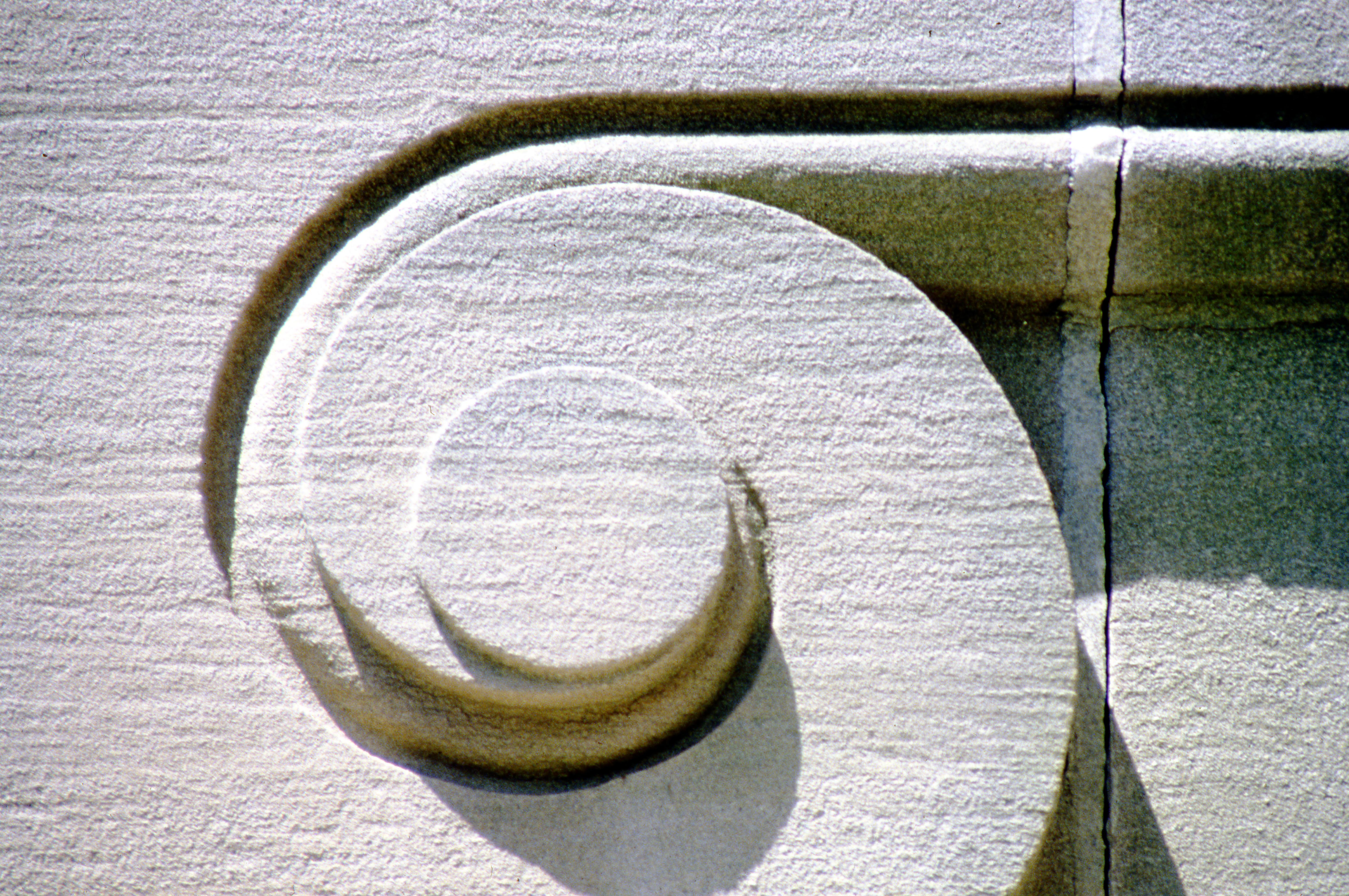 This Vanderburgh County Courthouse at 201 NW 4th St. was completed in 1890. The building still stands, but is now referred to as the old courthouse, as government offices moved into another building in 1969. (It would not have served as a courthouse at the time of this photograph.) The courthouse spans the block between NW 4th St. and NW 5th St., bounded by Vine St. and Court St. This detail is on the stairs on all four sides. The courthouse sits on ground that was once the turnaround for the Wabash and Erie Canal.