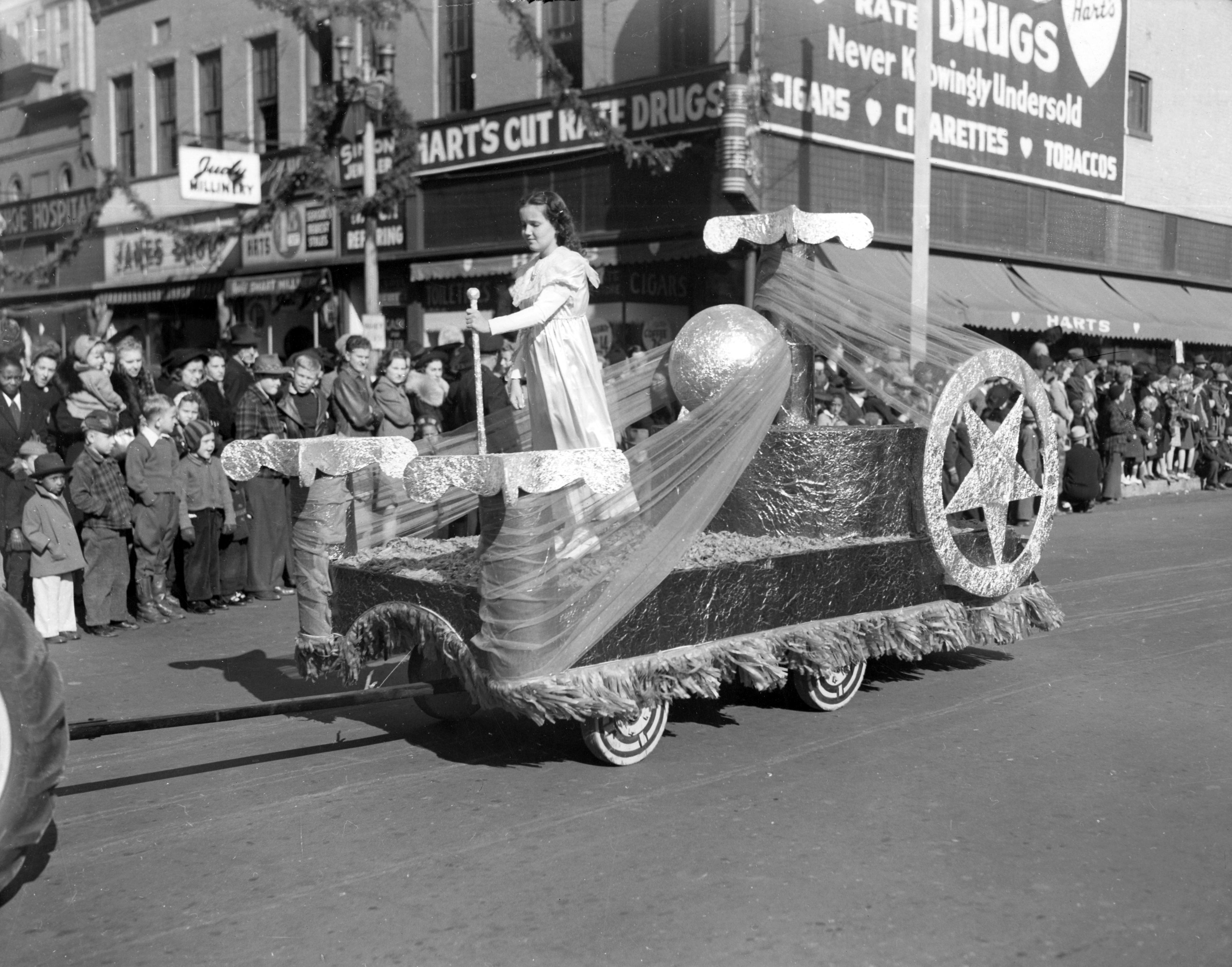 Christmas parade on SE 2nd St., crossing Main St. Hart's was located at 129-131 Main St.
