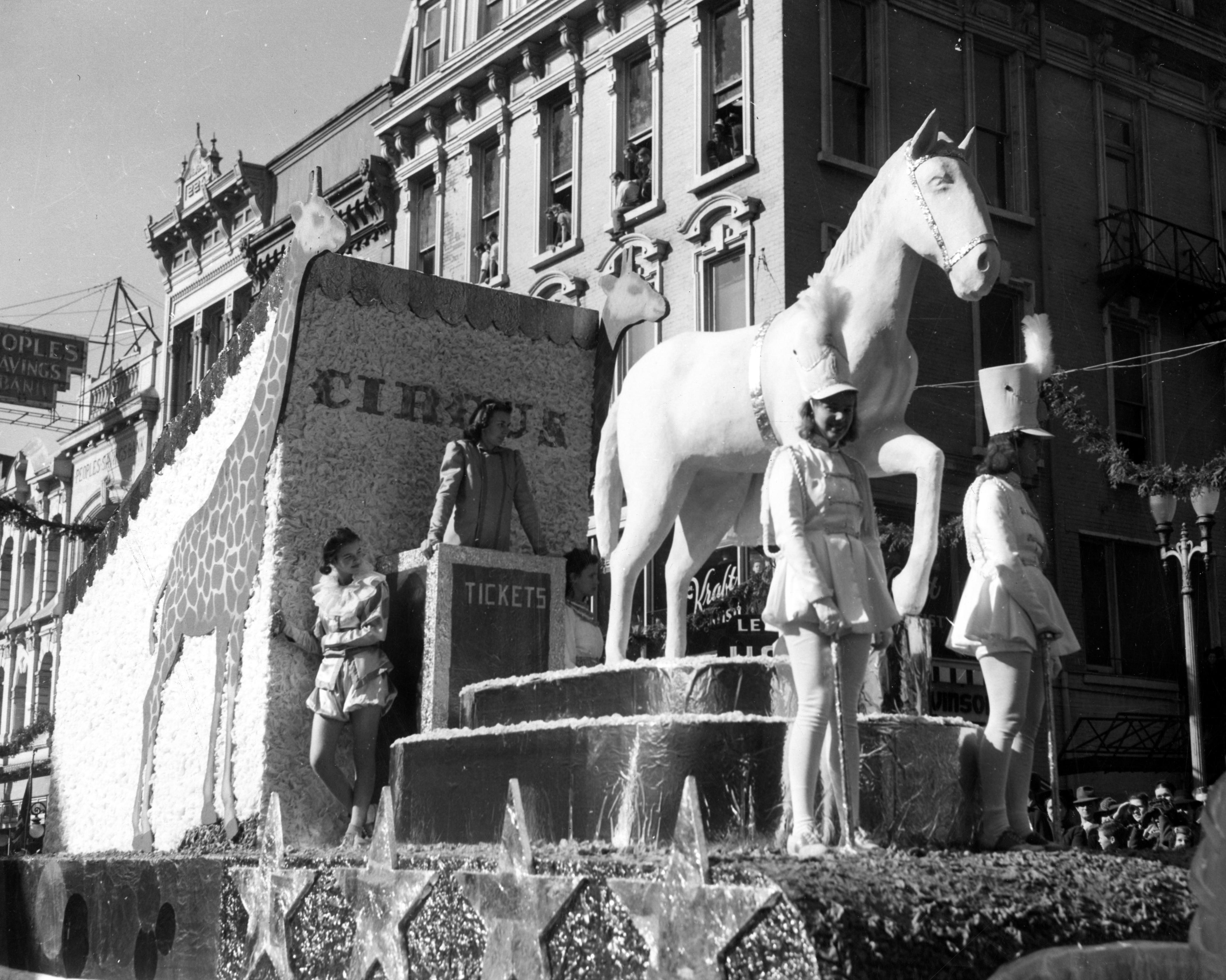 Christmas parade in the 200 block of Main St., in front of (left rear) Peoples Savings Bank at 222 Main St.