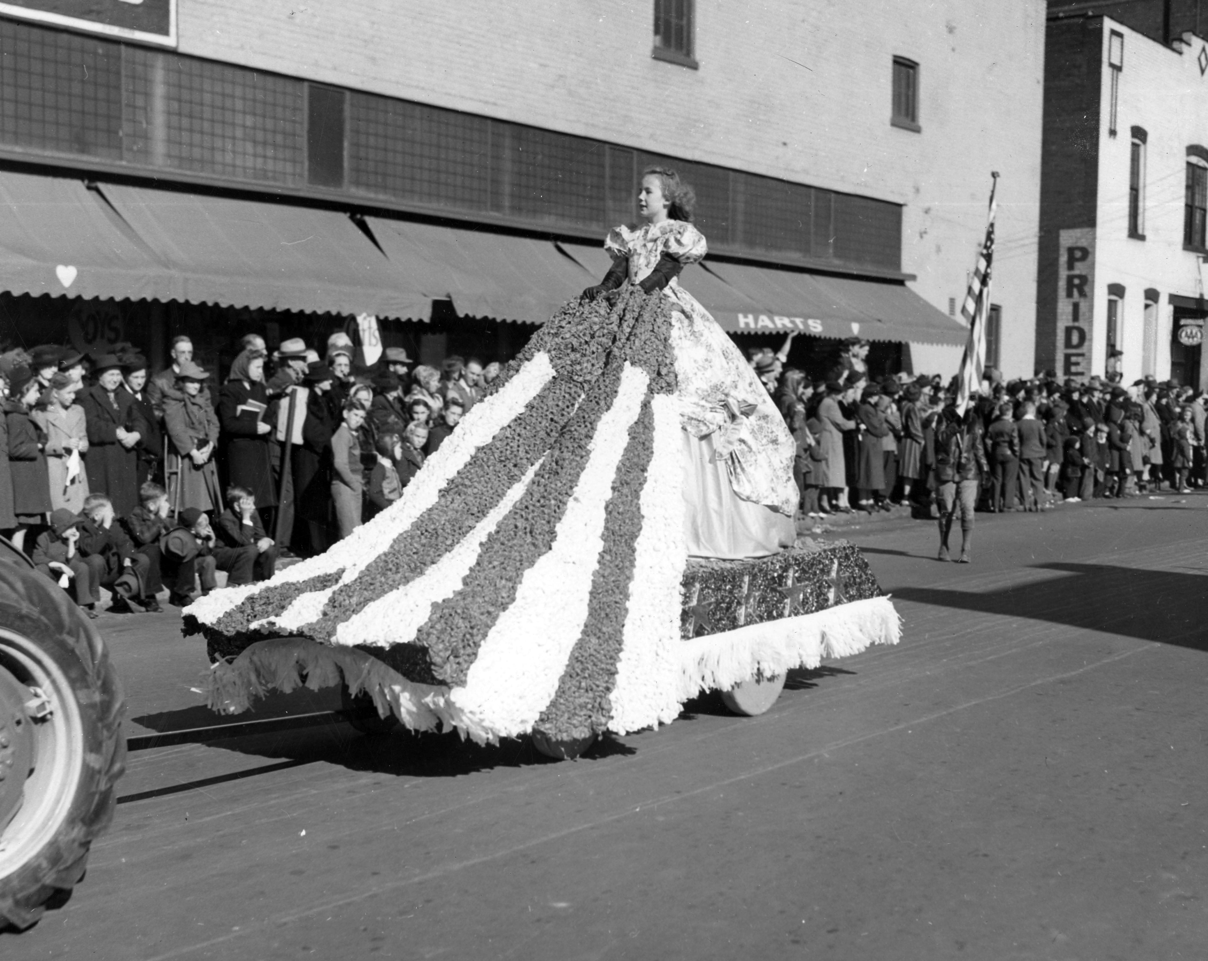 Christmas parade on SE 2nd St., near Main St. Hart's was located at 129-131 Main St. (this is the side of the building)
