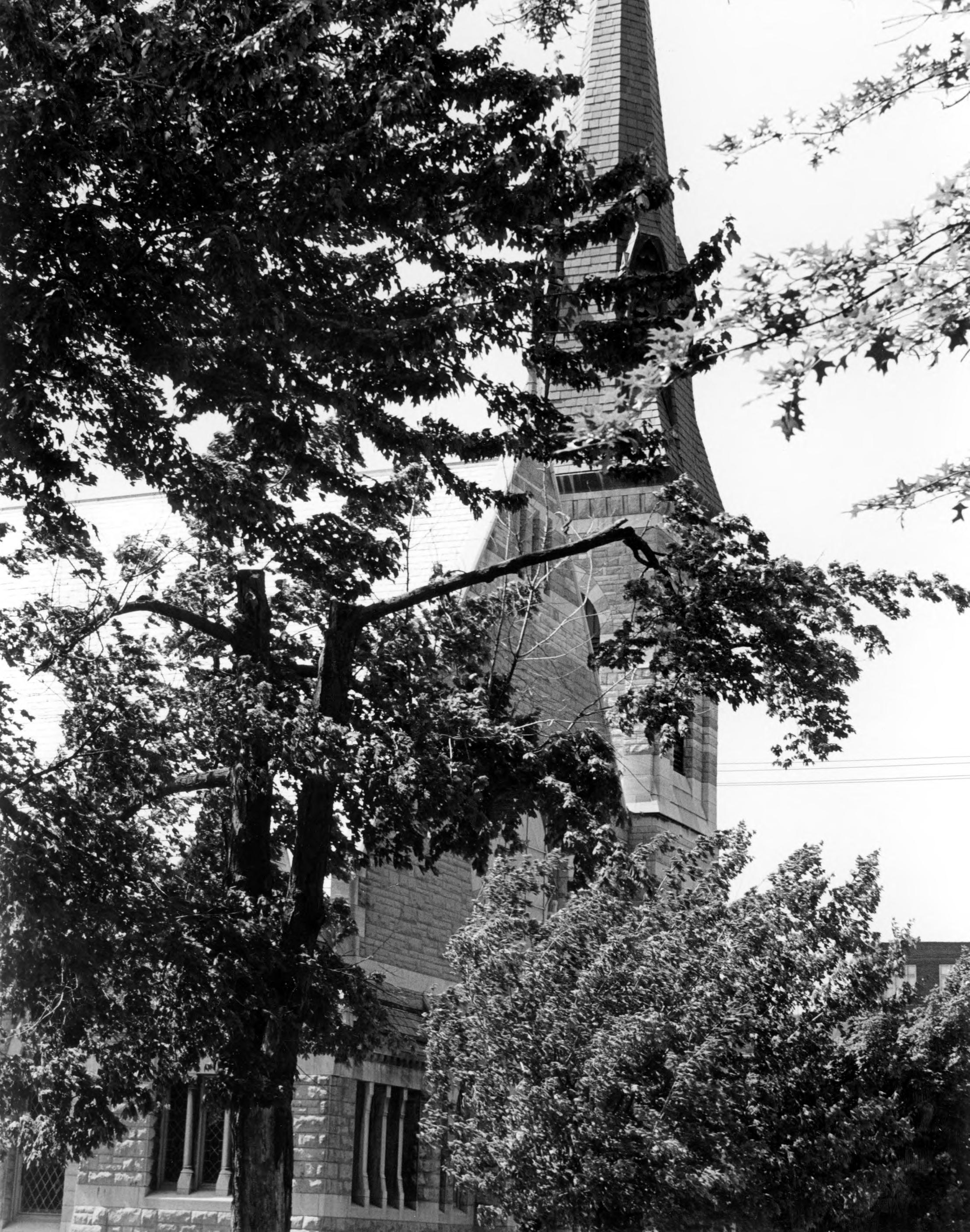 Steeple of St. Paul's Episcopal Church at 301 SE 1st St., formerly 601 Upper 1st St. This is the 2nd St. Paul's at this location--the first was built in 1839, and torn down to build today's church in 1886. Fire damaged the church interior in 1938 but it was rebuilt the following year. The spire was used as a marker by steamboats.