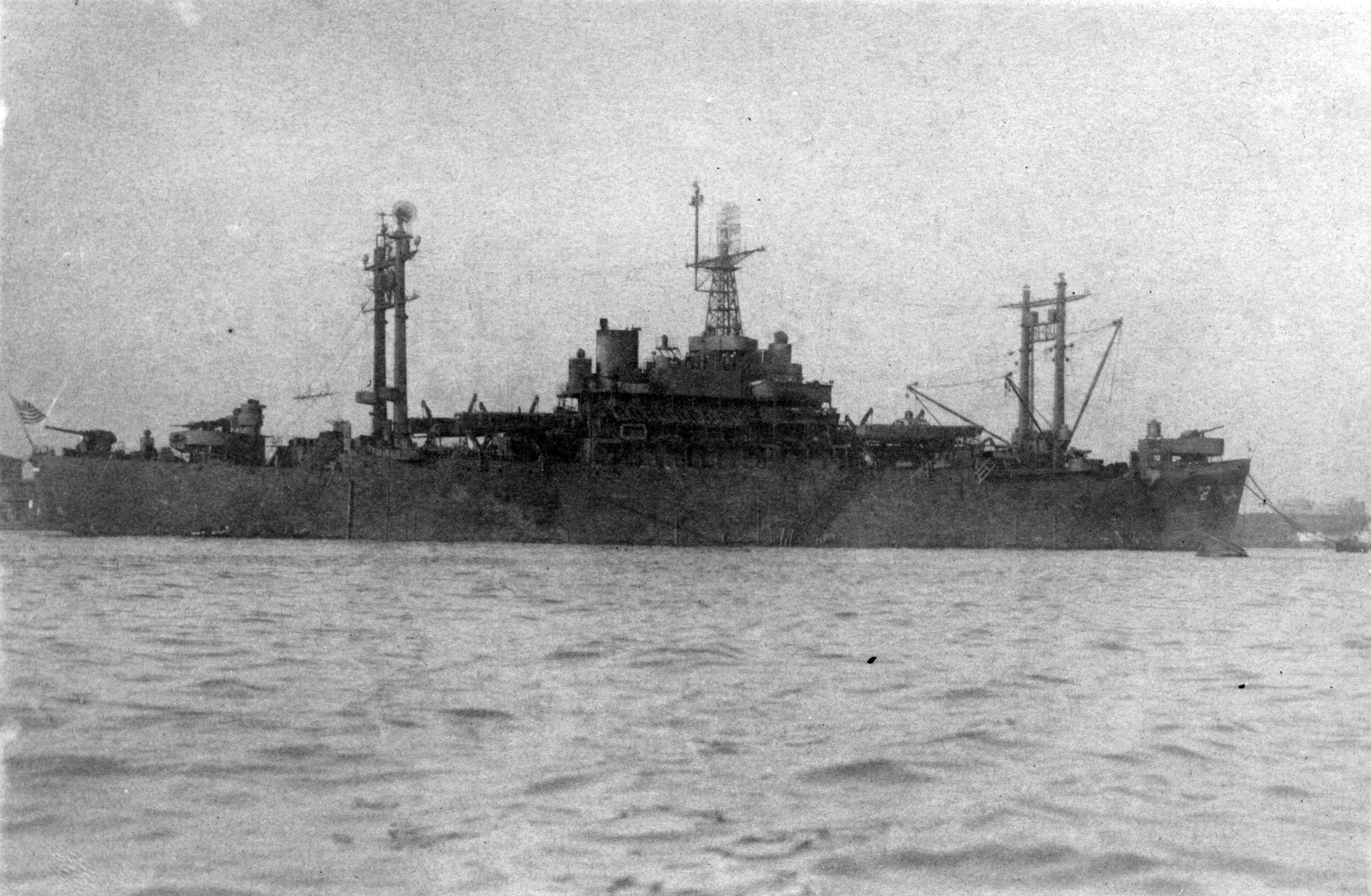 Blue Ridge AGC-2. Appalachian Class Amphibious Force Command Ship: Laid down, 4 December 1942, as a Maritime Commission type (C2-S-B1) hull, under Maritime Commission contract (MC hull 201) at Federal Shipbuilding and Dry Dock, Kearny, N.J. Launched, 7 March 1943. Transferred to the US Navy, 15 March 1943. Commissioned USS Blue Ridge (AGC-2), 27 September 1943, LCDR. L. R. McDowell in command. During World War II USS Blue Ridge was assigned to the Asiatic-Pacific Theater and participated in the following campaigns: Asiatic-Pacific Campaigns Leyte operation (Leyte landings, 13 to 30 October 1944), Luzon operation (ingayen Gulf landings, 9 to 14 January 1945). Following World War II USS Blue Ridge was assigned to Occupation and China service in the Far East for the following periods: Navy Occupation Service Medal and China Service Medal (extended), both 23 September 1945 to 24 February 1946. USS Blue Ridge (AGC-2) was assigned to Joint Task Force 1, Task Unit 1.3.3 Transportation Group (Observation Units) for Operation Crossroads the atomic bomb tests at Bikini Atoll in July 1946. Decommissioned, 14 March 1947. Struck from the Naval Register, 1 January 1960. USS Blue Ridge earned two battle stars for World War II service. Title transferred to the Maritime Administration, 26 August 1960. Final Disposition, sold for scrapping, 18 August 1960, to Zidell Explorations, Inc., Portland, OR. (PD-X-583 dated 22 July 1960) for $91,138.83, withdrawn from the US Naval Reserve Fleet, San Diego Group, 26 August 1960 (https://www.navsource.org/archives/10/01/0102.htm).