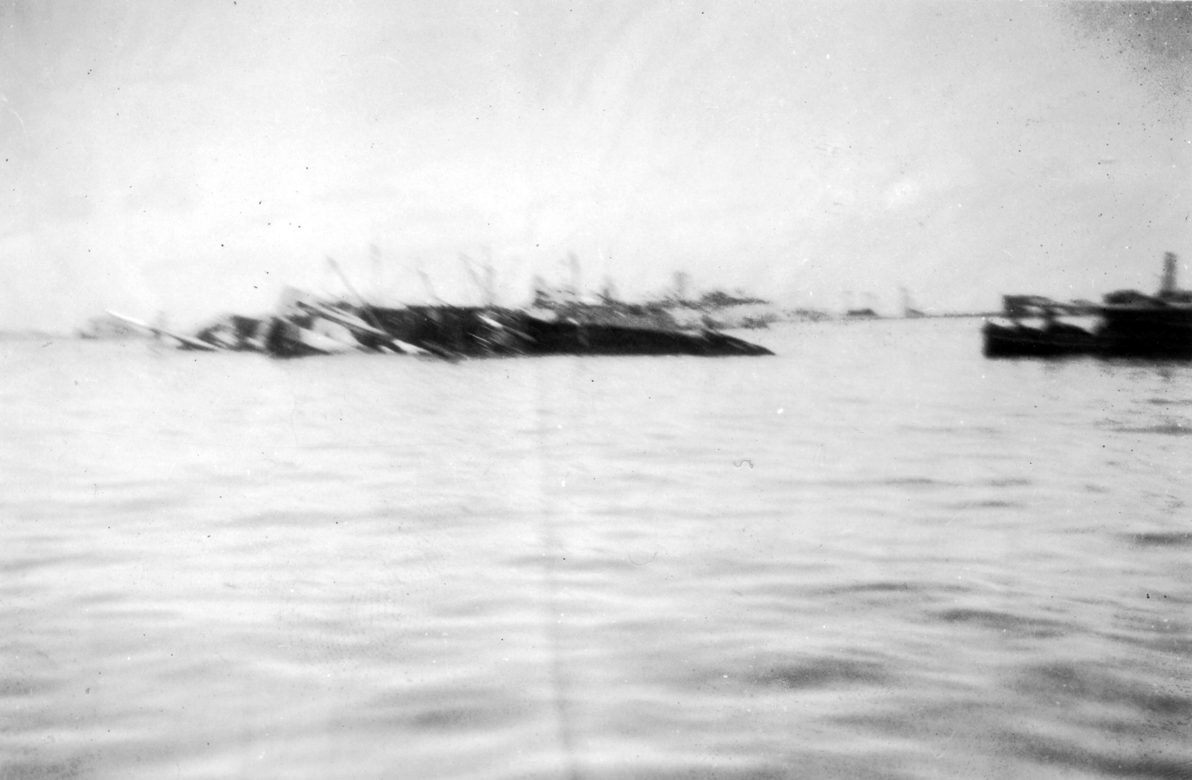 Identified as Manila Bay. [The battle for Manila took place Februrary 3-March 3, 1945.] U.S. forces landed on Luzon on January 9, 1945, and rapidly overran most of the island apart from Manila and the mountainous north. The Imperial Japanese Army commander, Tomoyuki Yamashita, concentrated his main defense in the north, but did not abandon the city. The Battle of Manila began on February 3, 1945, as U.S. Army forces entered the outskirts of the city. Initial actions belied the eventual ferocity of the battle, as U.S. and Japanese forces struck a temporary truce at a local university that had been converted into a prisoner of war camp, enabling the safe transit of both the detainees and the Japanese forces that had been guarding them. By February 5, U.S. forces began to enter areas of the city that Japanese forces had heavily fortified. MacArthur had imposed sharp limits on the use of aerial bombing, and some limitations on the use of artillery, but the latter fell away as the determination of Japanese defenders became apparent. MacArthur exacerbated the U.S. problem by declaring victory on February 6, while most of Manila was still in Japanese hands. The situation rapidly deteriorated as Japanese forces entrenched and fortified positions in the city, often in buildings dated to the 17th century. The troops occupying the city, primarily belonging to the Imperial Japanese Navy, quickly lost cohesion and discipline, and began mass, systematic reprisals and massacres against Filipino civilians. Over the next three weeks, U.S. and Japanese forces systematically destroyed the oldest parts of the city, with hand-to-hand fighting in some areas and massive artillery bombardments in others. The fighting and the artillery barrages destroyed many buildings that had survived since the early Spanish colonial period, and which represented the historical heritage of the Philippine people. Japanese depredations against civilians included not only abject massacres (including attacks against co-belligerent Germans who lived in the cities) but also the extensive use of human shields. Organized Japanese resistance ended in early March. Altogether, the battle incurred over 6,000 U.S. casualties, 16,000 Japanese (almost the entire garrison killed) and between 100,000 and a quarter million Filipino civilians. (https://thediplomat.com/2021/02/remembering-the-battle-of-manila-76-years-later/)