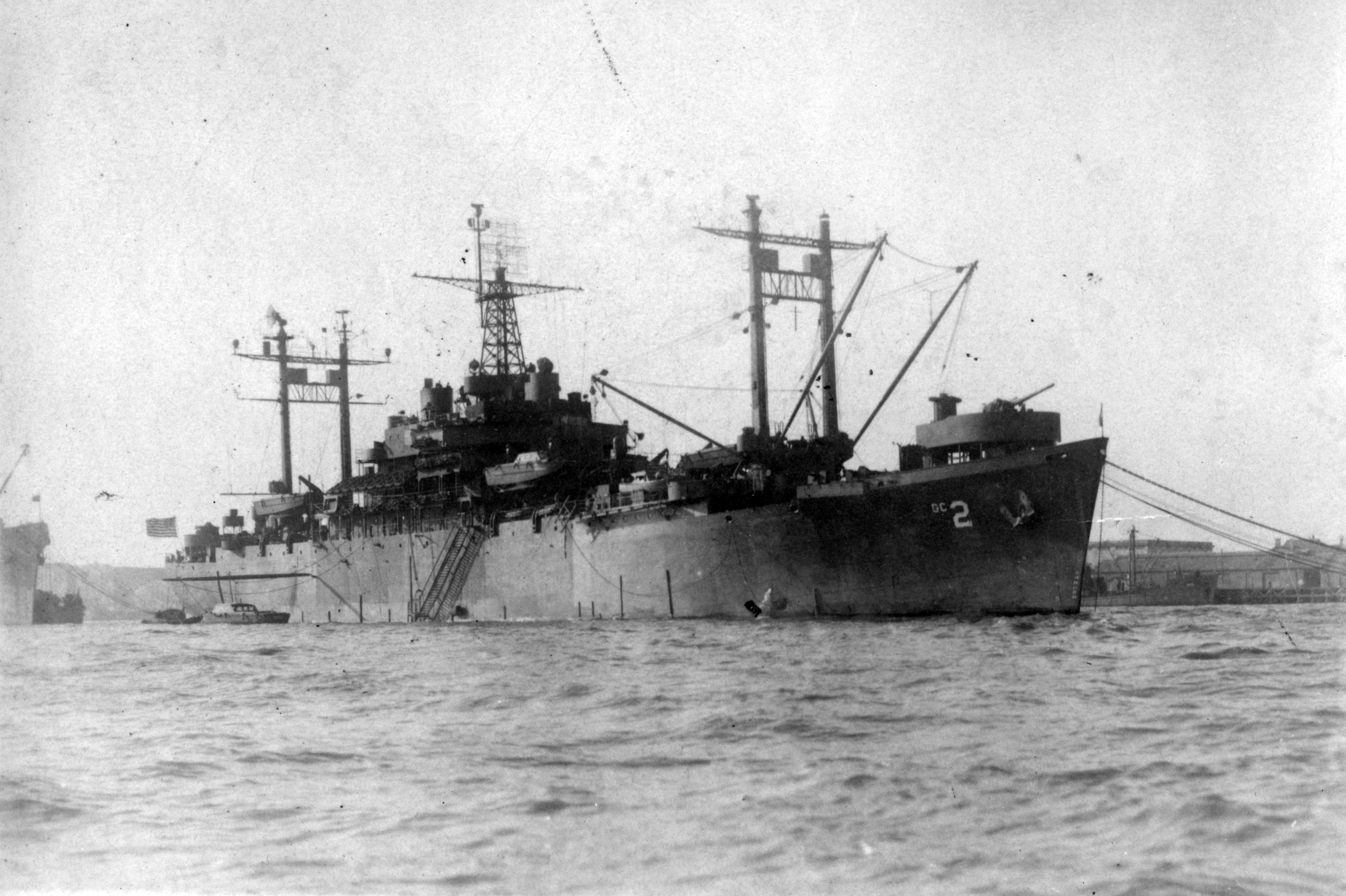 Blue Ridge AGC-2. Appalachian Class Amphibious Force Command Ship: Laid down, 4 December 1942, as a Maritime Commission type (C2-S-B1) hull, under Maritime Commission contract (MC hull 201) at Federal Shipbuilding and Dry Dock, Kearny, N.J. Launched, 7 March 1943. Transferred to the US Navy, 15 March 1943. Commissioned USS Blue Ridge (AGC-2), 27 September 1943, LCDR. L. R. McDowell in command. During World War II USS Blue Ridge was assigned to the Asiatic-Pacific Theater and participated in the following campaigns: Asiatic-Pacific Campaigns Leyte operation (Leyte landings, 13 to 30 October 1944), Luzon operation (ingayen Gulf landings, 9 to 14 January 1945). Following World War II USS Blue Ridge was assigned to Occupation and China service in the Far East for the following periods: Navy Occupation Service Medal and China Service Medal (extended), both 23 September 1945 to 24 February 1946. USS Blue Ridge (AGC-2) was assigned to Joint Task Force 1, Task Unit 1.3.3 Transportation Group (Observation Units) for Operation Crossroads the atomic bomb tests at Bikini Atoll in July 1946. Decommissioned, 14 March 1947. Struck from the Naval Register, 1 January 1960. USS Blue Ridge earned two battle stars for World War II service. Title transferred to the Maritime Administration, 26 August 1960. Final Disposition, sold for scrapping, 18 August 1960, to Zidell Explorations, Inc., Portland, OR. (PD-X-583 dated 22 July 1960) for $91,138.83, withdrawn from the US Naval Reserve Fleet, San Diego Group, 26 August 1960 (https://www.navsource.org/archives/10/01/0102.htm)
