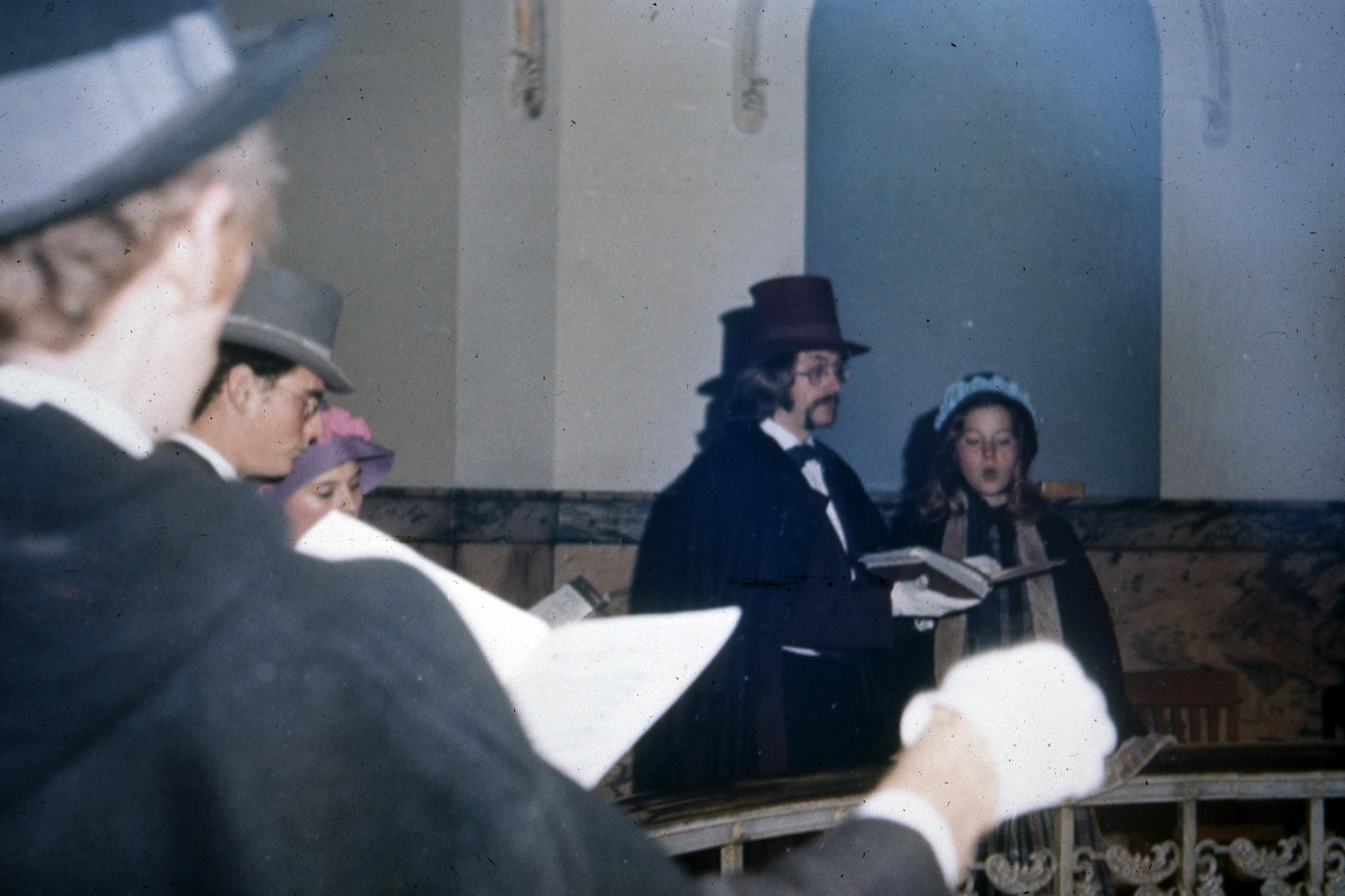 Christmas caroling, dressed in Victorian era clothing, at the Vanderburgh County Courthouse. The old Vanderburgh County Courthouse, a Beaux Arts structure was designed by Henry Wolters of Louisville, KY. Construction began in 1888 and was completed by 1890, with offices moving in early in 1891. It occupies the block bounded by 4th, Vine, 5th, and Court streets, an area that was once a turnaround basin for the Wabash and Erie Canal. The building still stands, although it has not served as a Courthouse since 1969.