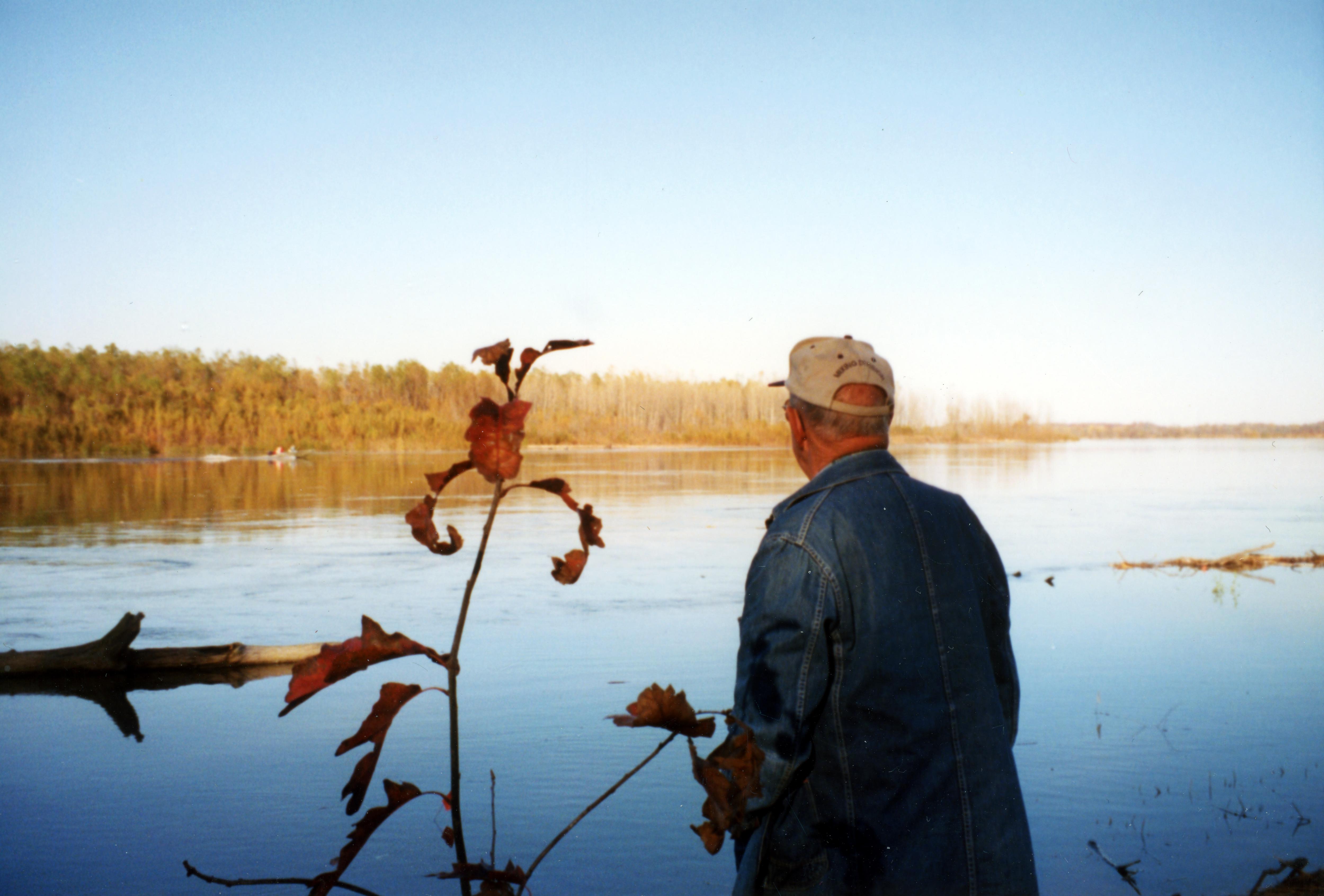 Al Cook observing Wabash River flooding in New Harmony, Indiana