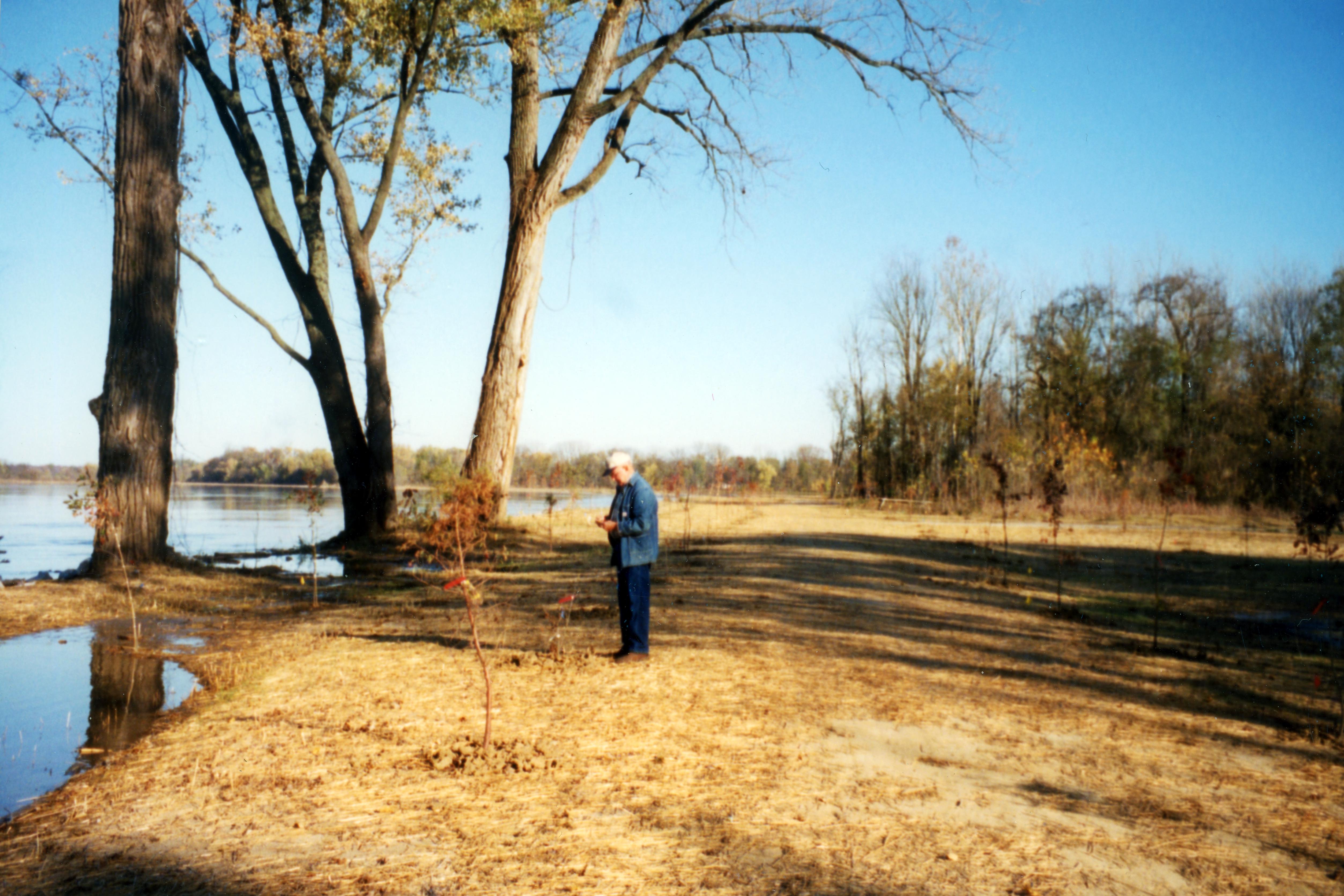 Al Cook observing Wabash River flooding in New Harmony, Indiana