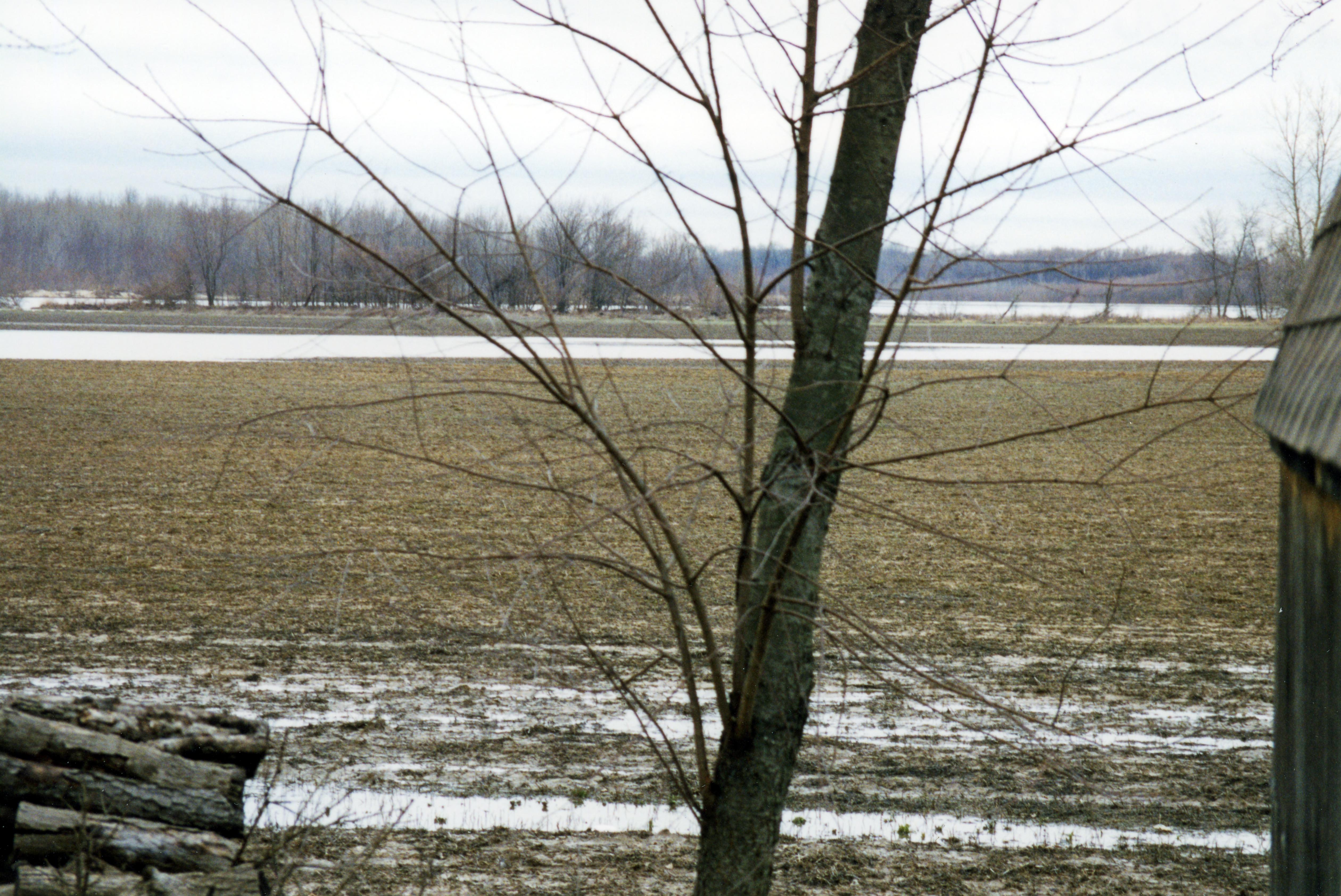 Flood water from the Wabash River in a field off of North Street; river stage 14.85 feet