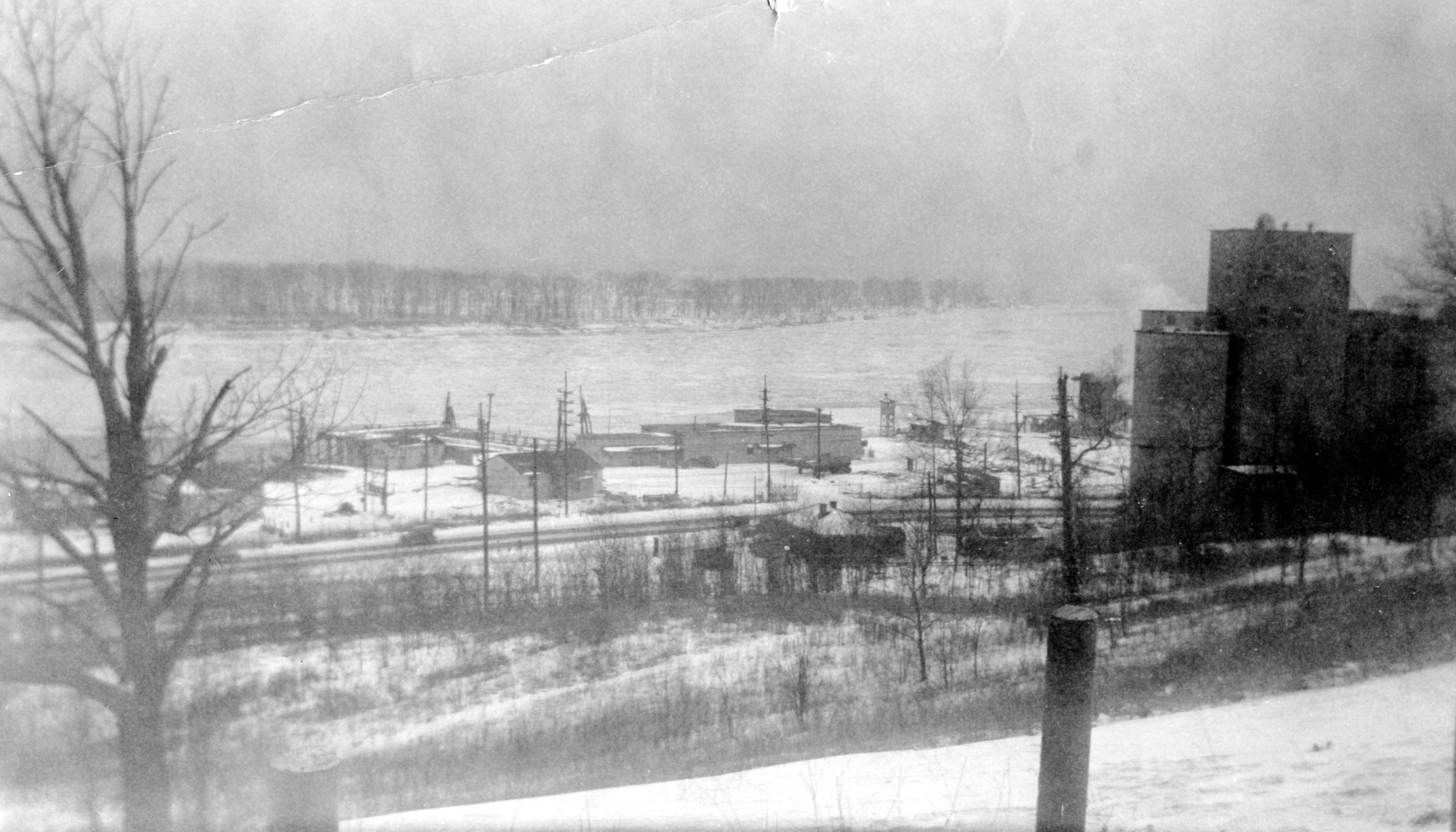 Looking from Reitz or Coal Mine Hill at the frozen Ohio River. No specific information about this event could be found, but the river did freeze Feb. 1-12 in Cincinnati, so it's presumed the local freeze was around this time.