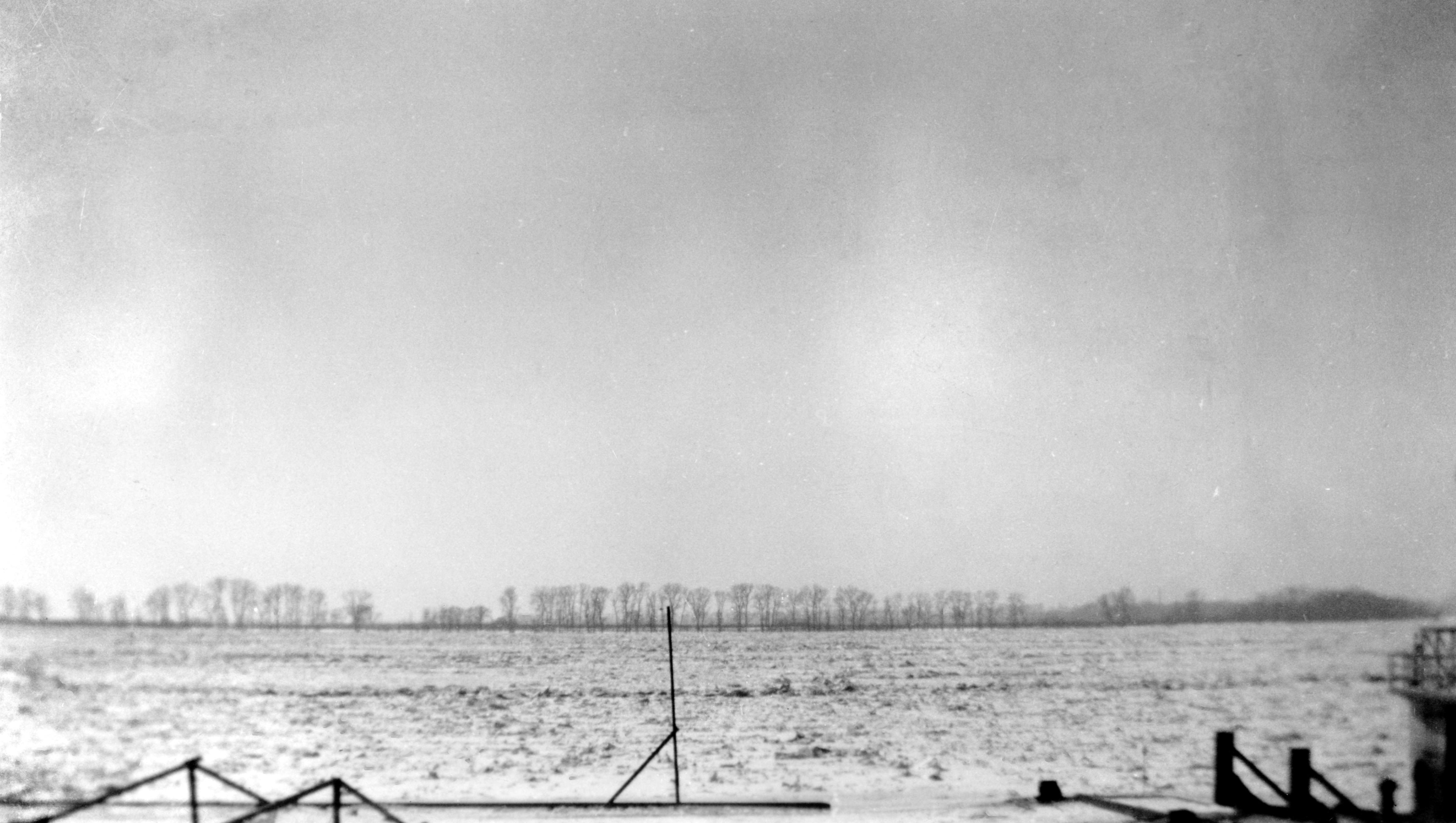 Ohio River frozen with ice. According to newspaper accounts, it was frozen between February 17-25.