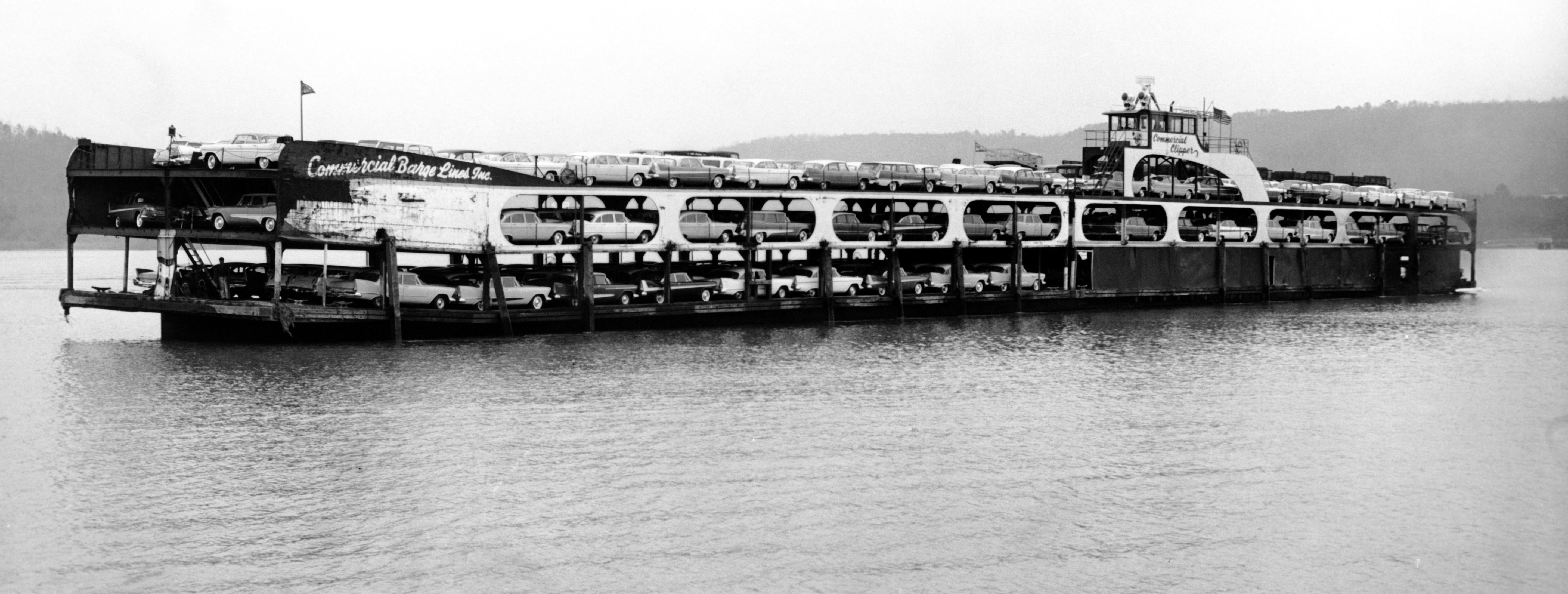 Commercial Barge Lines (CBL) barge Commercial Clipper hauling cars. This car carrier was built in 1947 for Commercial Barge Lines, Inc., by St. Louis Shipbuilding and Steel Company. Commercial Barge Line Company, together with its subsidiaries, operates as an inland marine transportation and service company in the United States. The company operates in two segments, Transportation and Manufacturing. The Transportation segment provides dry cargo barge transportation and liquid tank barge transportation on the Inland Waterways. The company was founded in 1915 and is headquartered in Jeffersonville, Indiana. Commercial Barge Line Company is a subsidiary of American Commercial Lines Inc.