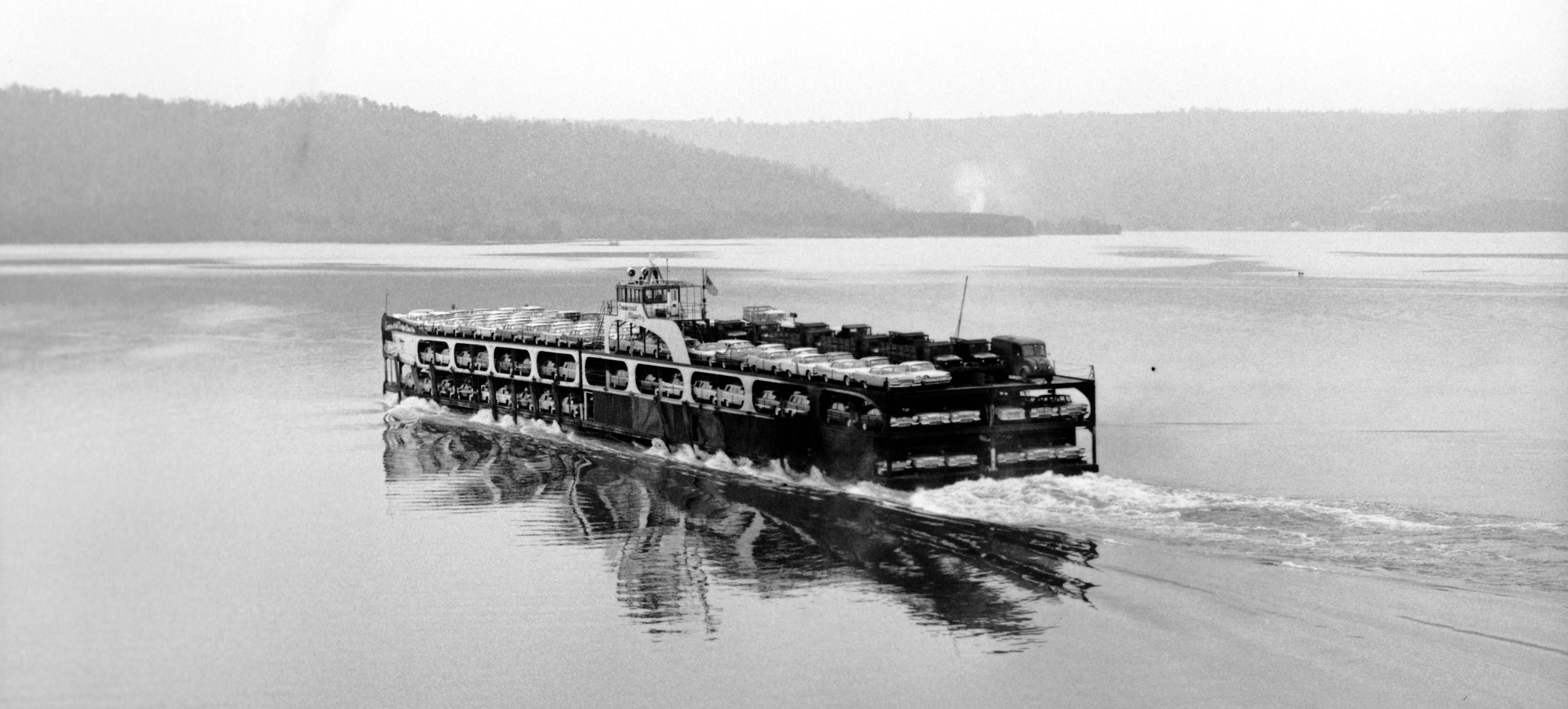 Commercial Barge Lines (CBL) barge Commercial Clipper hauling cars. This car carrier was built in 1947 for Commercial Barge Lines, Inc., by St. Louis Shipbuilding and Steel Company. Commercial Barge Line Company, together with its subsidiaries, operates as an inland marine transportation and service company in the United States. The company operates in two segments, Transportation and Manufacturing. The Transportation segment provides dry cargo barge transportation and liquid tank barge transportation on the Inland Waterways. The company was founded in 1915 and is headquartered in Jeffersonville, Indiana. Commercial Barge Line Company is a subsidiary of American Commercial Lines Inc.