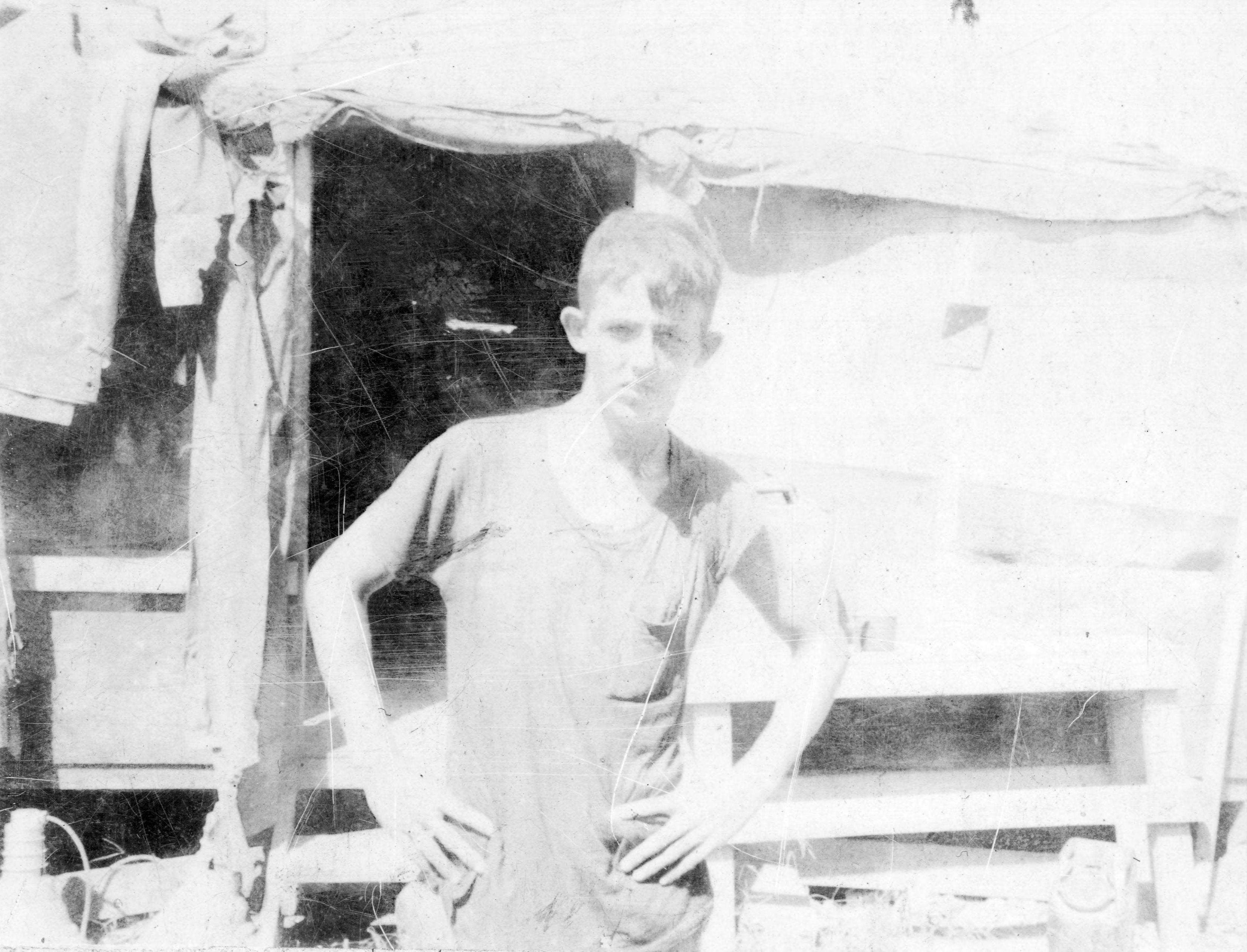 Rick Winters standing with hands on hips outside of a bunkhouse.
