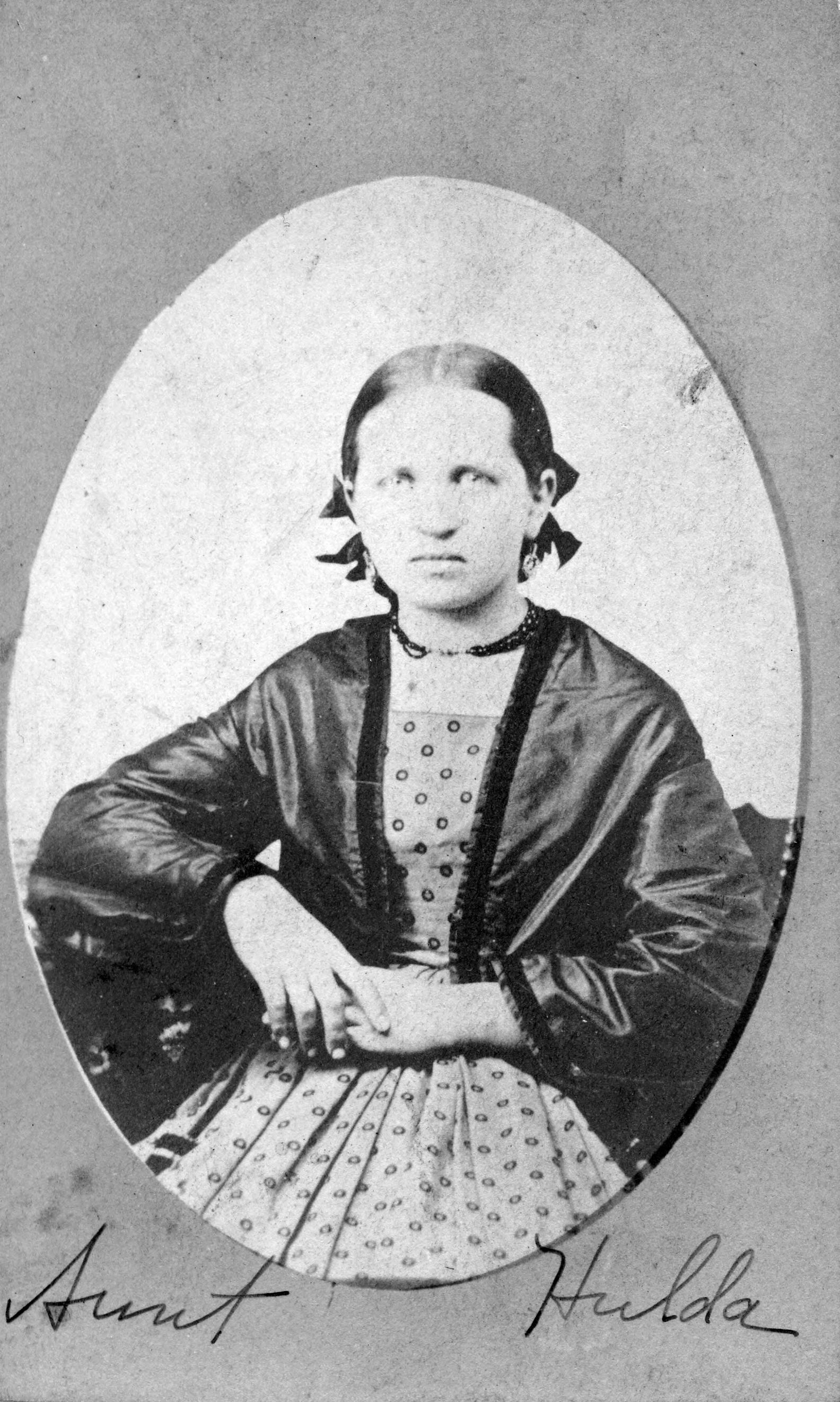 Portrait with the handwritten words, Aunt Hulda. She looks like a young woman here. Hulda Illing Cluthe was the daughter of August and Mary Illing, and the mother of the originator of this collection. Her husband was Dr. Charles Cluthe. She died September 1, 1949. Hulda is sometimes called Lena in some sources. The photographer who took this photograph was located, over post office, in Mansfield, Ohio.