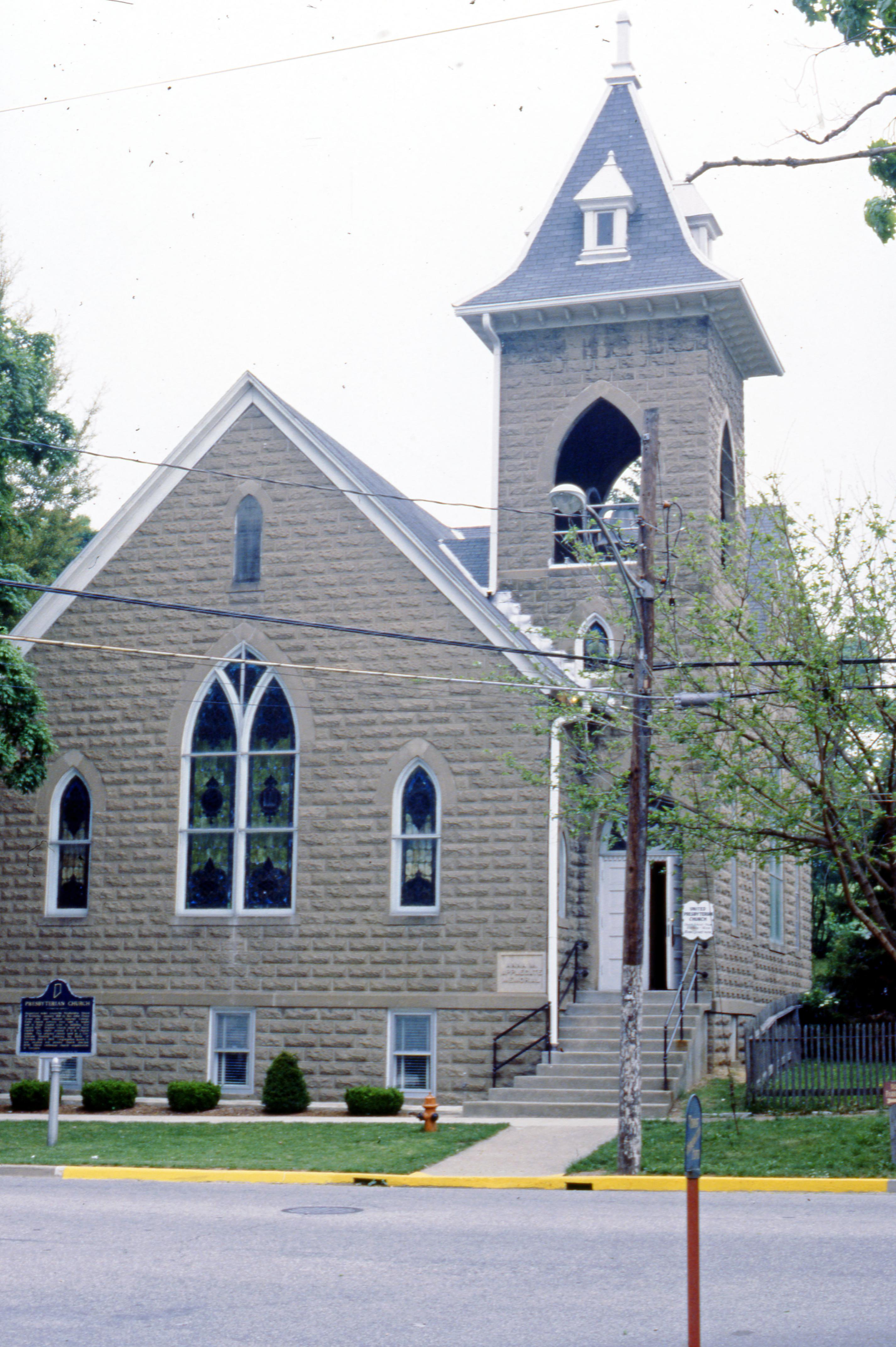 Anna M. VanZandt Applegate Memorial Presbyterian Church Presbyterian Church at 126 E. Walnut St. --the text of the historic marker reads, Organized under Louisville Presbytery, Synod of Kentucky, January 1819 by Rev. John Finley Crowe who later founded Hanover College. Early Church services were held in homes and in State Capitol prior to building first church 1826. Original church stood on South Capitol Ave. ....This original church used as a Confederate Hospital following the Battle of Corydon, July 9, 1863. Congregation moved to new location and present church erected 1906. Oldest continuous church organization in Corydon. (https://www.in.gov/history/markers/123.htm) Annie M. Van Zandt Applegate (18471899) was the wife of George W. (Ned) Applegate, pioneer Corydon banker.