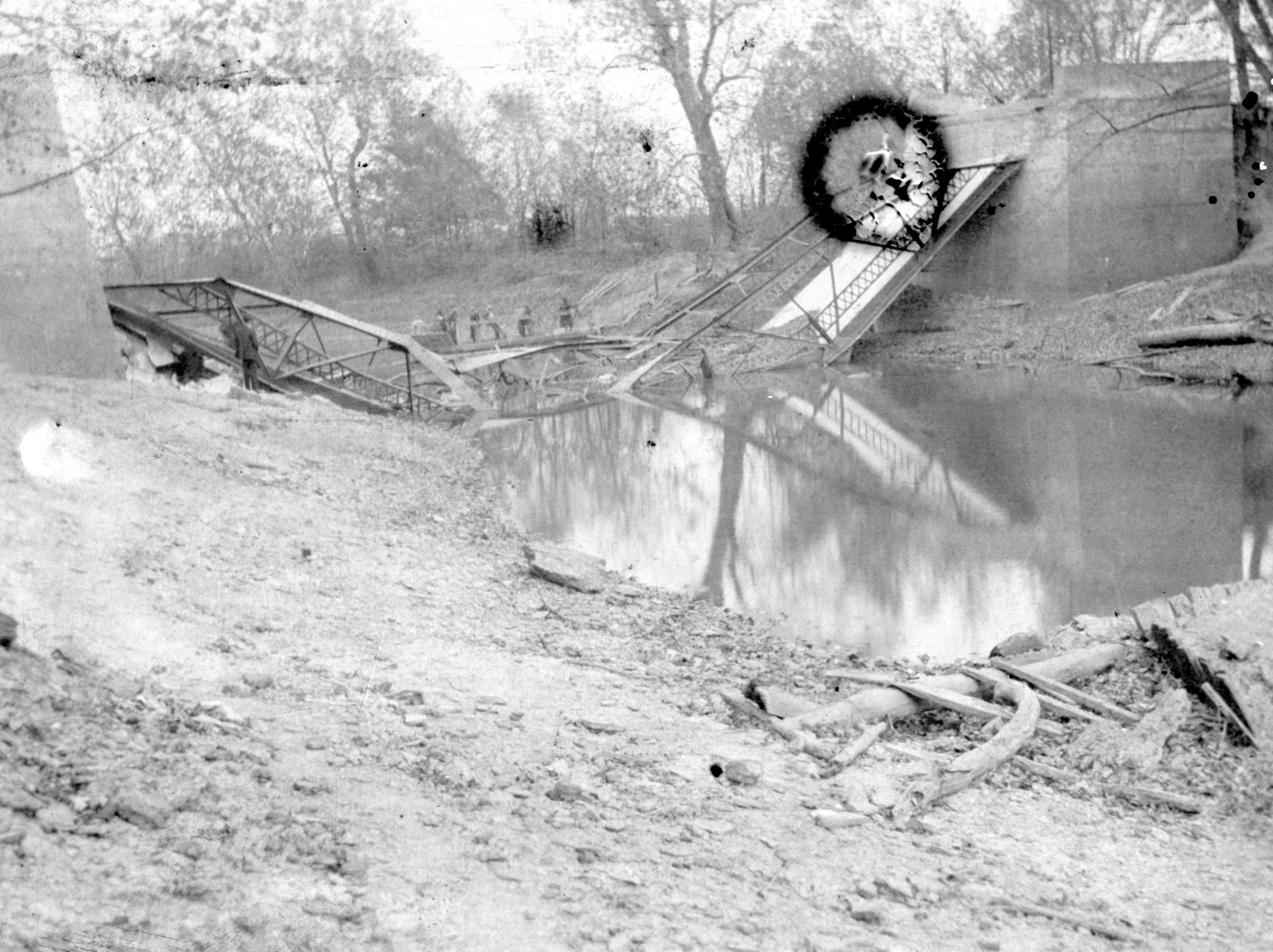 Severns Bridge collapse. John Severns, Sr., a native of Wales, is recognized as the first white settler in Gibson County. While enlisted as a soldier during the Revolutionary War, he secured a furlough to visit his parents in the wilds of West Virginia. While there, he was captured along with his entire family by Indians. His father, mother, a younger brother and sister were murdered by them while he and his older brother were held as prisoners and taken back to an Indian town somewhere on the headwaters of the White River. After being a prisoner for seven years he made his escape and soon afterward married and settled in Kentucky where he lived for three years. His older brother, who was captured with him was given to another family of Indians and taken away and he never saw him again. This brother was adopted by a prominent chief and later married an Indian woman. In 1789 John Severns, Sr., settled with his wife and five children on the south bank of the Patoka River, two and one-half miles north of Princeton, Indiana at a point now known as Severns Bridge, where he ran a ferry boat. This point was long known as Severns Ferry, later Severns Bridge. Because of his knowledge of the Indian dialect, their manners and customs, he was able to make friends with the Indians and they permitted him to settle among them. At that time there was a large Indian town on the north bank of the Patoka river, nearly opposite his home. John Severns, Sr., died in about 1829. Severns Bridge was constructed in 1908 and rehabilitated in 2009 by the local government and Federal Highway funds. (http://gibsoncountyin.org/severns-bridge/)