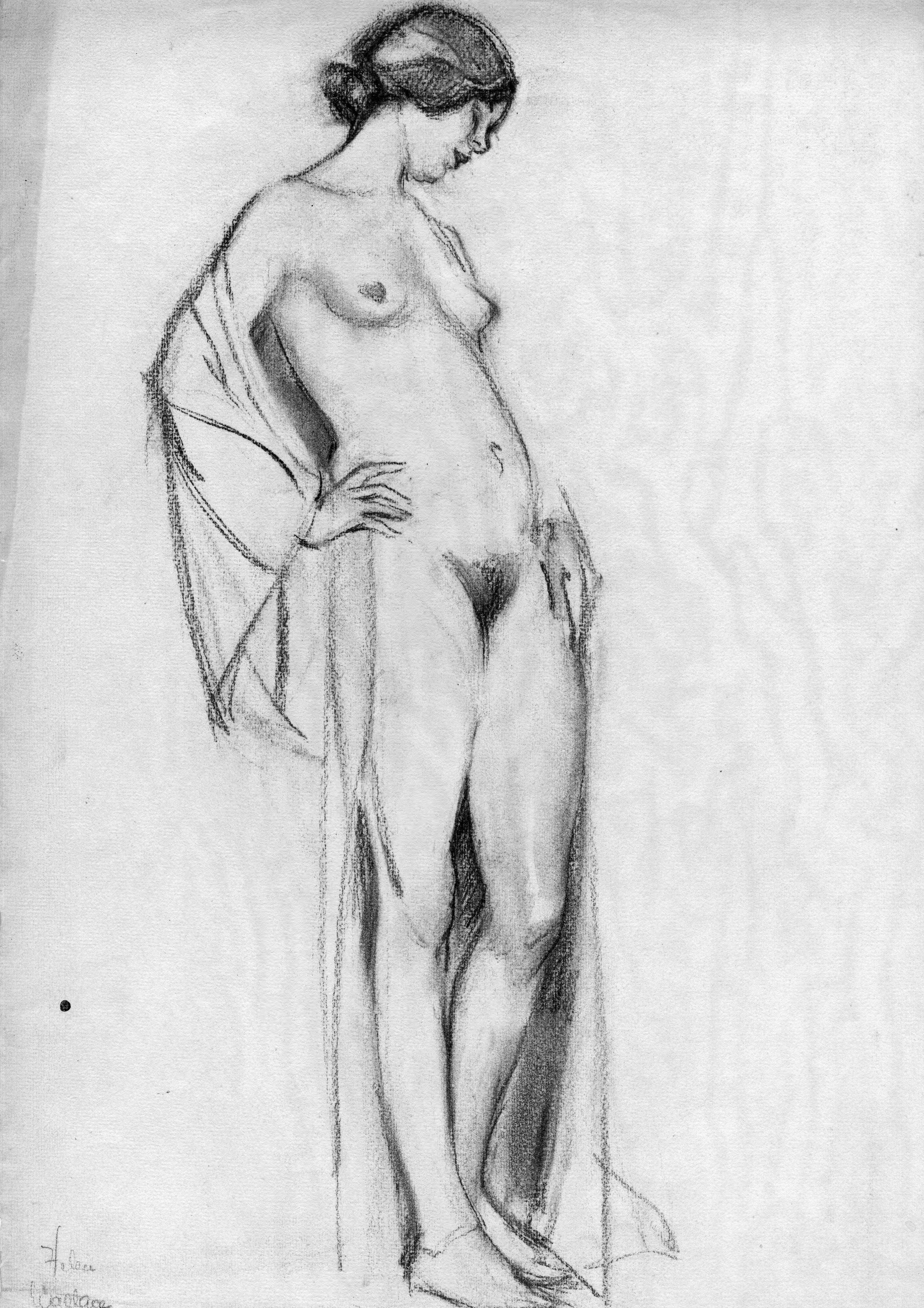 Pencil sketch of a nude woman, standing--a more finished version of MSS 056-058