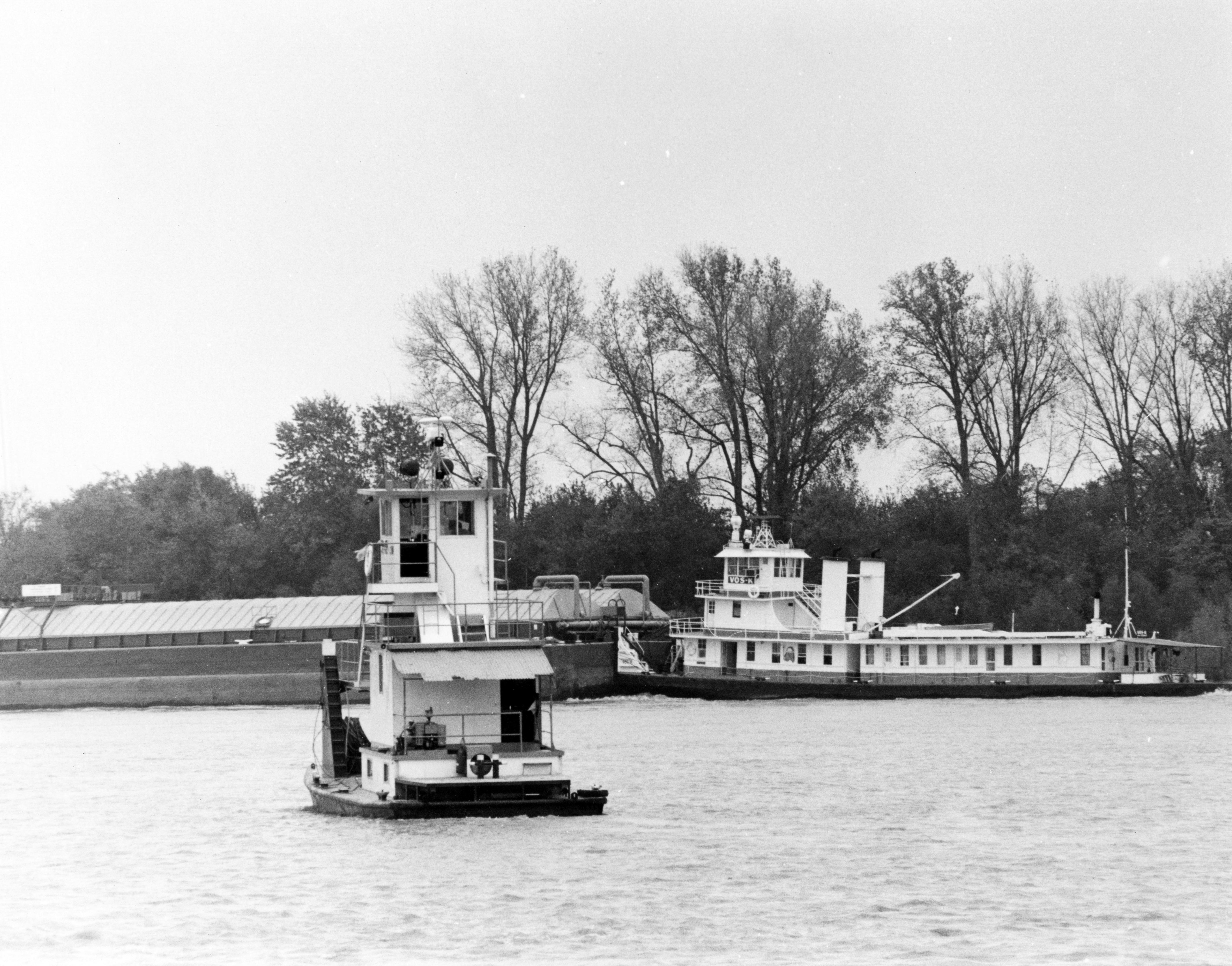 Tugboats and barges ply the waters off Mt. Vernon, one of the busy Ohio River shipping ports.