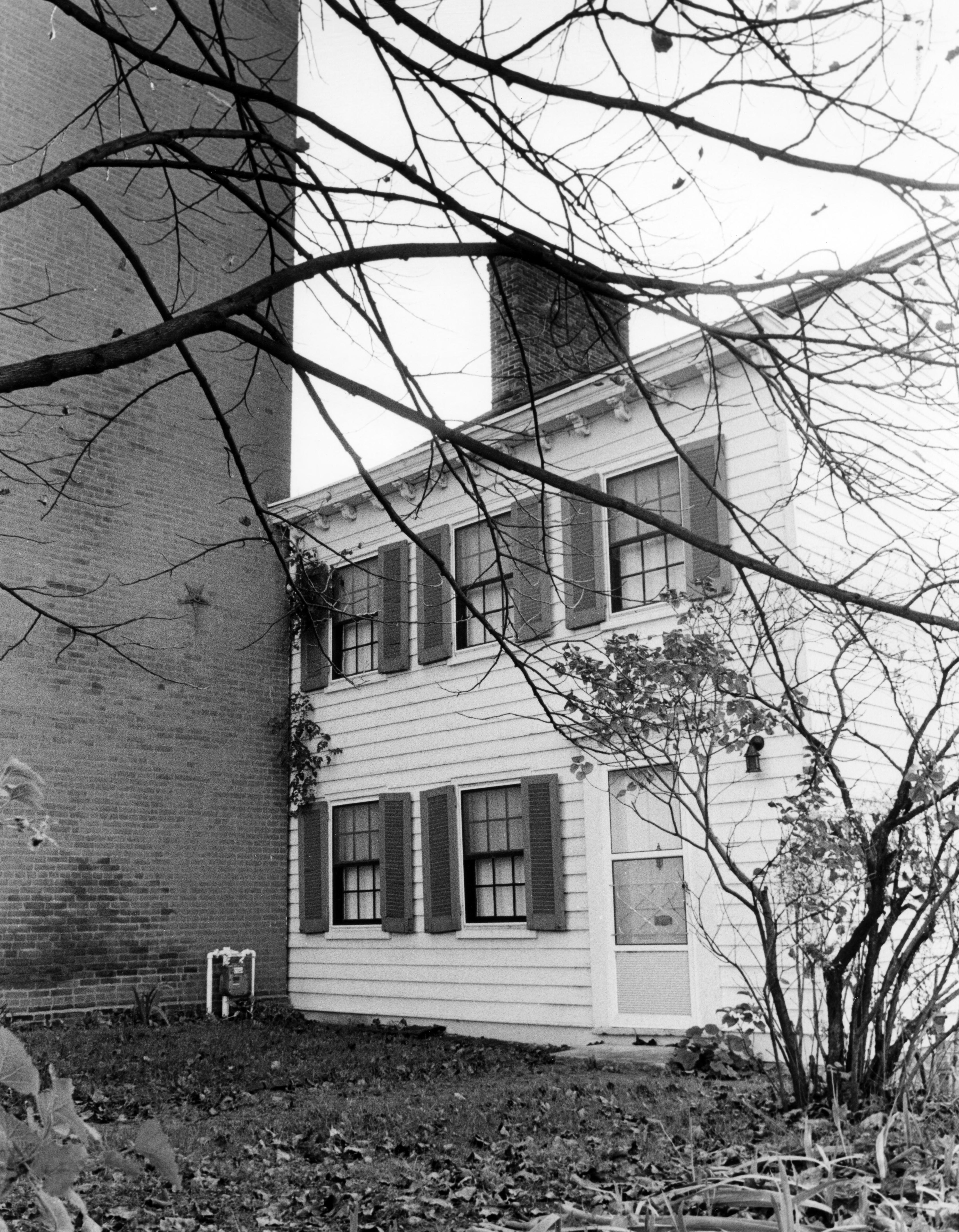The Scribner House [110 E. Main St.] is a historic home located at New Albany, Floyd County, Indiana. It was built by Joel Scribner, one of the three brothers who founded New Albany. He and his brothers, Nathaniel and Abner, came from New York State and named their new town, New Albany, after the capital of their home state. It is located in downtown New Albany, on the southeast corner of State and Main Streets near the Sherman Minton Bridge. It is the oldest building in New Albany. Joel built the house in 1813-1814 using the ash, oak, and poplar trees that were cut down when clearing the property. It is designed in a New England Federal style. In total, it is 2 1/2 stories. The first floor features two parlors and a hall. The second floor has 3 bedrooms. Both these floors have a rear porch that allowed a view of the Ohio River. The ground floor is the large kitchen with a wide fireplace used for cooking. The house passed through the family until the final owner, Harriet Scribner, a member of the Daughters of the American Revolution, sold it to the Piankeshaw Chapter of the National Society Daughters of the American Revolution, who made sure to keep it as Harriet left it when she died later that year.In 1977 it was put on the National Register of Historic Places. This is a completely commercial district, the building to the left is a restaurant, as of the May 2019 Google maps view.