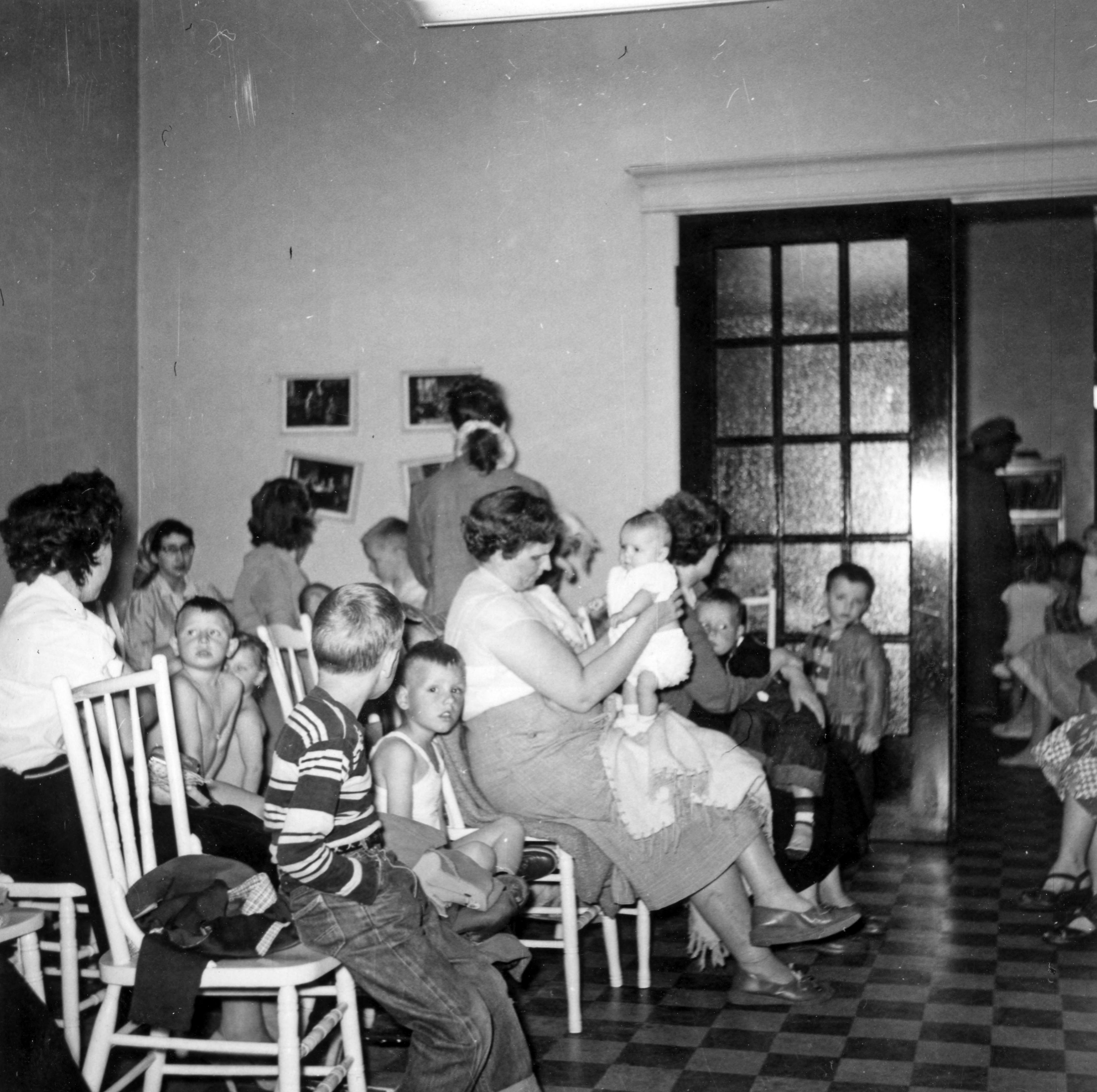 Waiting room full of women and children--probably a public health clinic