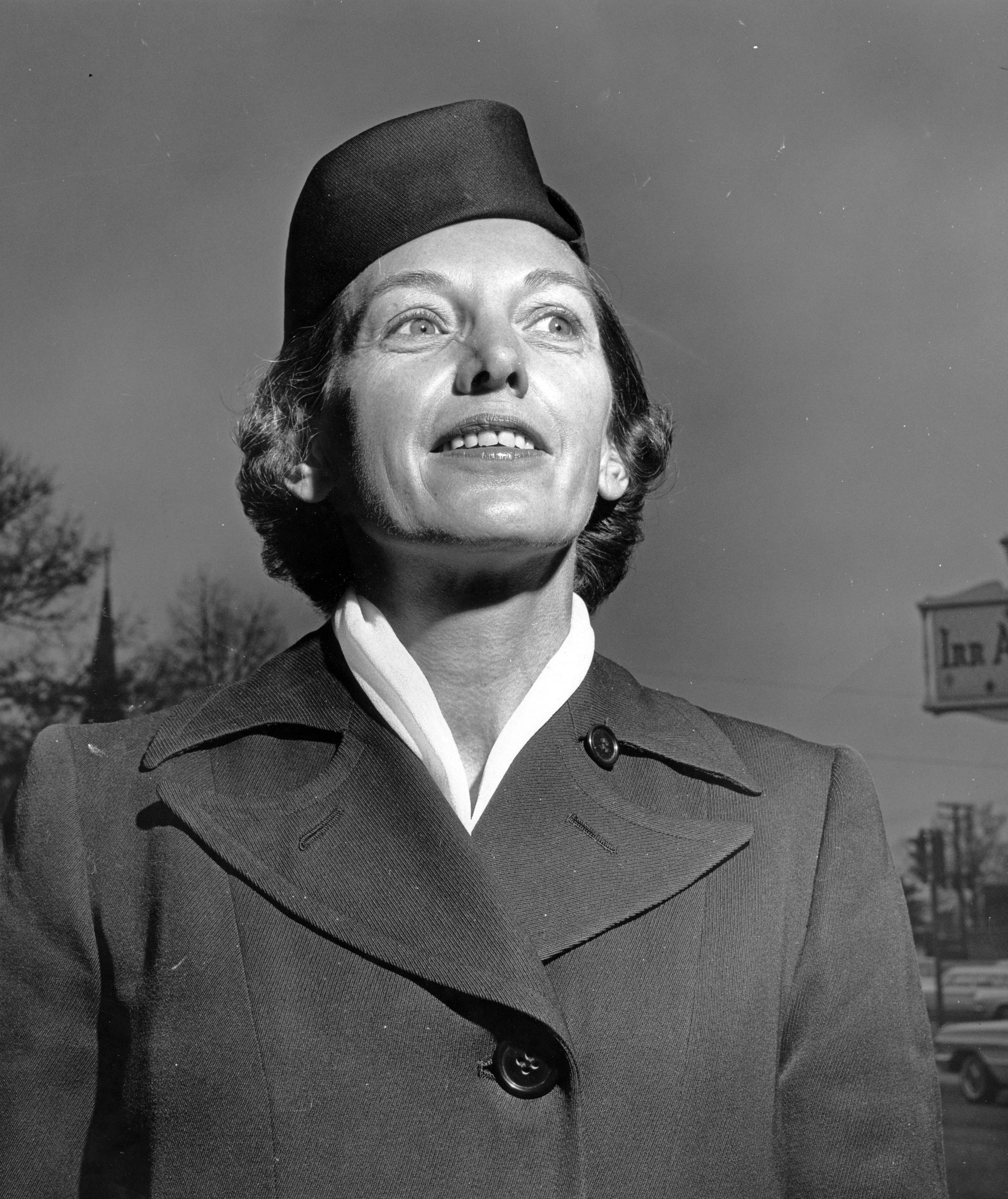 Close up of Nurse Esther Goebel. Probable further identification of the nurse: Esther Elizabeth Dausmann Goebel (1915-2002). An address of 846 Ravenswood is written on the back of the photograph. According to city directories, that would be at the corner with S. Bedford Ave. and not Goebel's home.