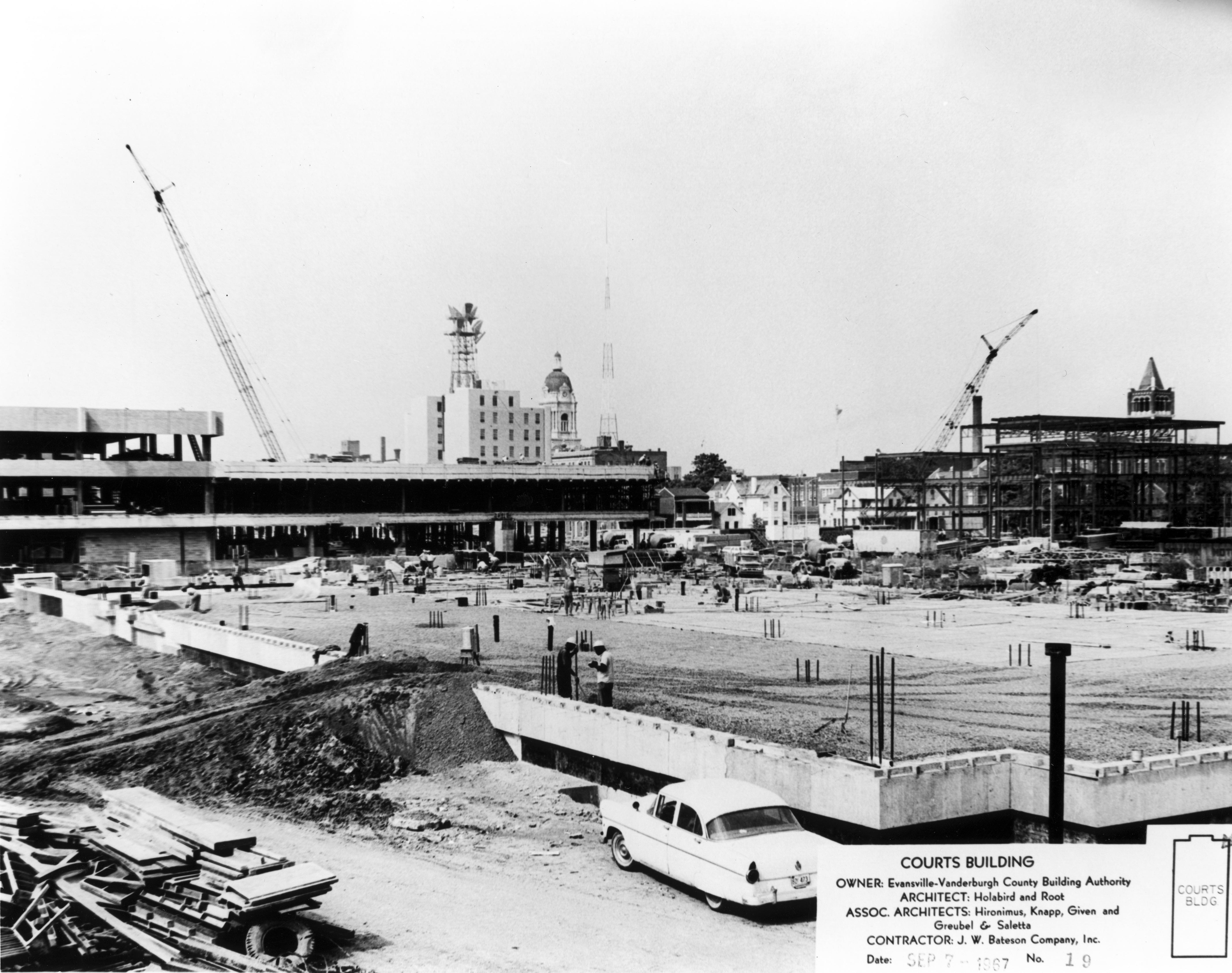 Construction of the Courts Building: Winfield K. Denton (named for the U.S. Representative for Indiana's 8th Congressional district 1955-1966) Federal Building at 101 NW Martin Luther King, Jr. Blvd. (7th St. at the time). This building serves as United States court house.