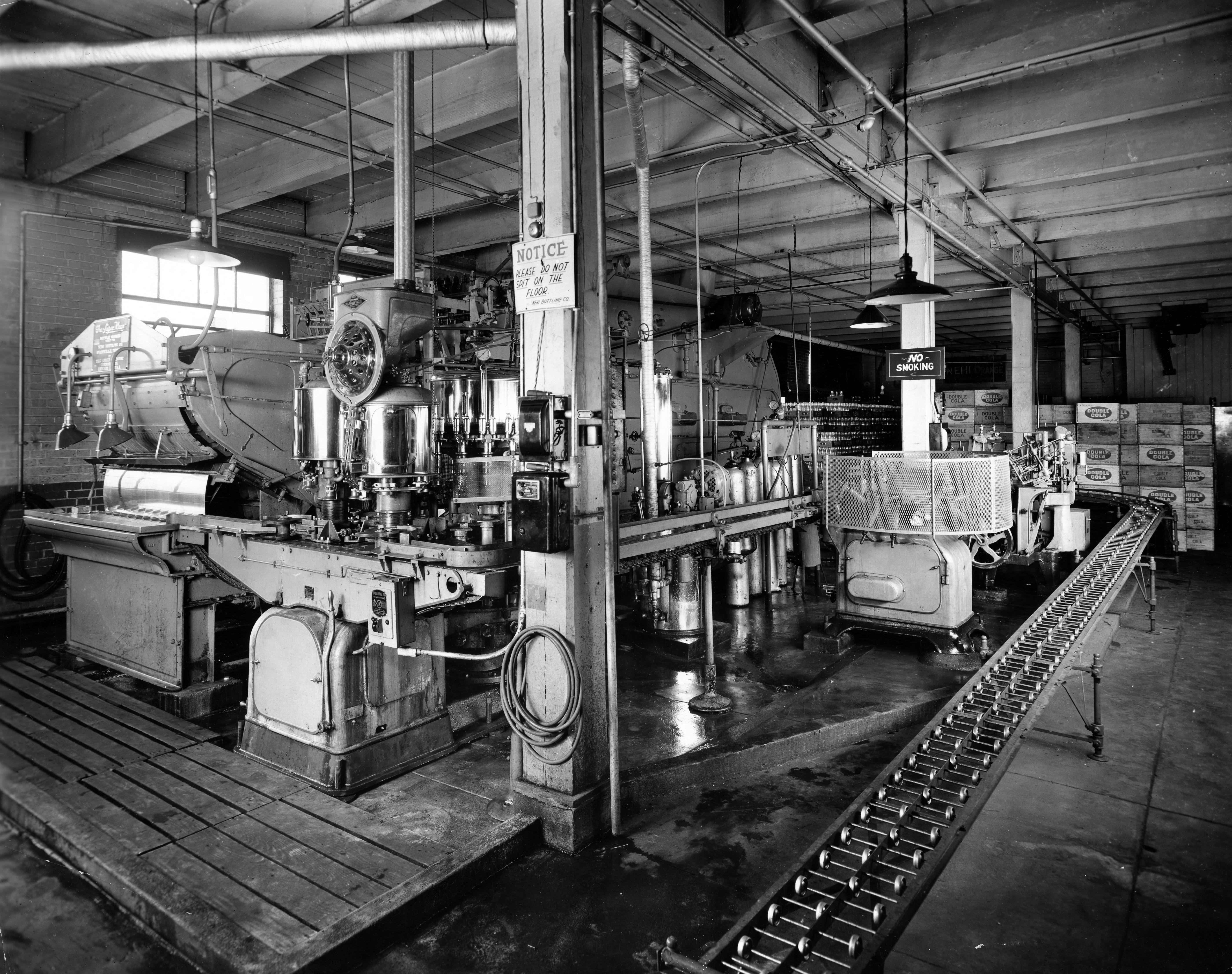 Inside the Double Cola Co. bottling plant at 1300 W. Franklin St. This bottling plant no longer exists. According to Wikipedia, Double-Cola is the name of a carbonated soft drink. It is manufactured by The Double Cola Company, headquartered in Chattanooga, Tennessee. Double Cola was formerly available in a somewhat wider area of the South. Yet Double Cola is a distinctive part of culture in Southern Indiana, especially around Evansville (for example, Double Cola Fields). It was once marketed as a lower-cost alternative to Coca-Cola and other soft drinks, but Double Cola is now marketed as a premium brand in that area, with the same or higher price than Coca-Cola or Pepsi-Cola.