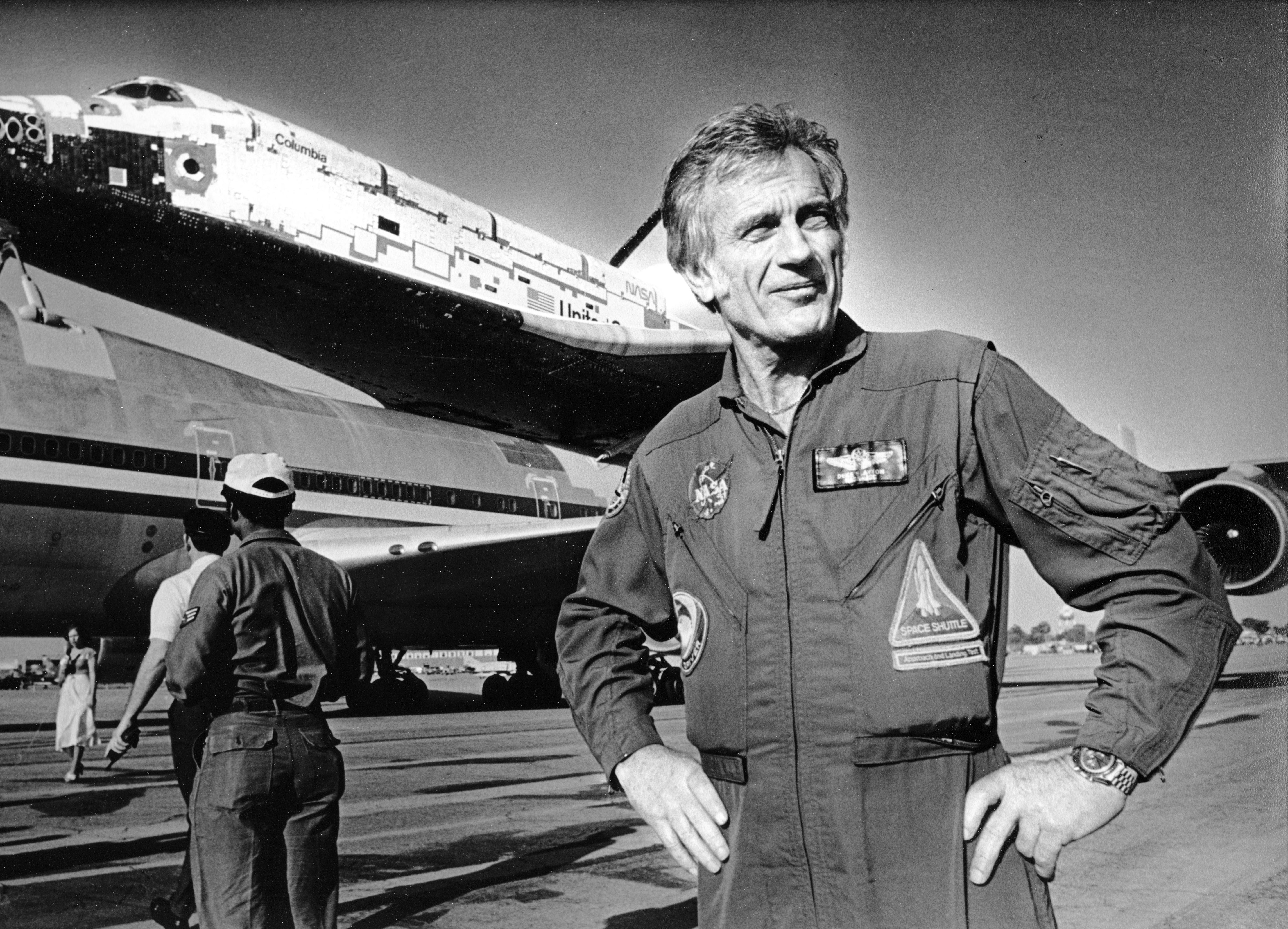Space Shuttle Columbia, atop its transport plane, and astronaut Deke Slayton. Donald Kent Deke Slayton (March 1, 1924 � June 13, 1993) was a United States Air Force pilot, aeronautical engineer, and test pilot who was selected as one of the original NASA Mercury Seven astronauts. He went on to become NASA's first Chief of the Astronaut Office and Director of Flight Crew Operations, responsible for NASA crew assignments. Slayton joined the U.S. Army Air Forces during World War II, and flew in Europe and the Pacific. He left the Army after World War II, and later joined the Minnesota Air National Guard after working for Boeing as an aeronautical engineer. He joined the United States Air Force, and attended the Air Force Test Pilot School in 1955. In 1959, he applied to, and was selected as one of the Mercury Seven. He was scheduled to pilot the second U.S. crewed orbital spaceflight, but was grounded in 1962 by atrial fibrillation, an irregular heart rhythm. In March 1972, he was medically cleared to fly and was the docking module pilot of the 1975 Apollo�Soyuz Test Project (ASTP). He continued to work at NASA until 1982, and helped develop the Space Shuttle.