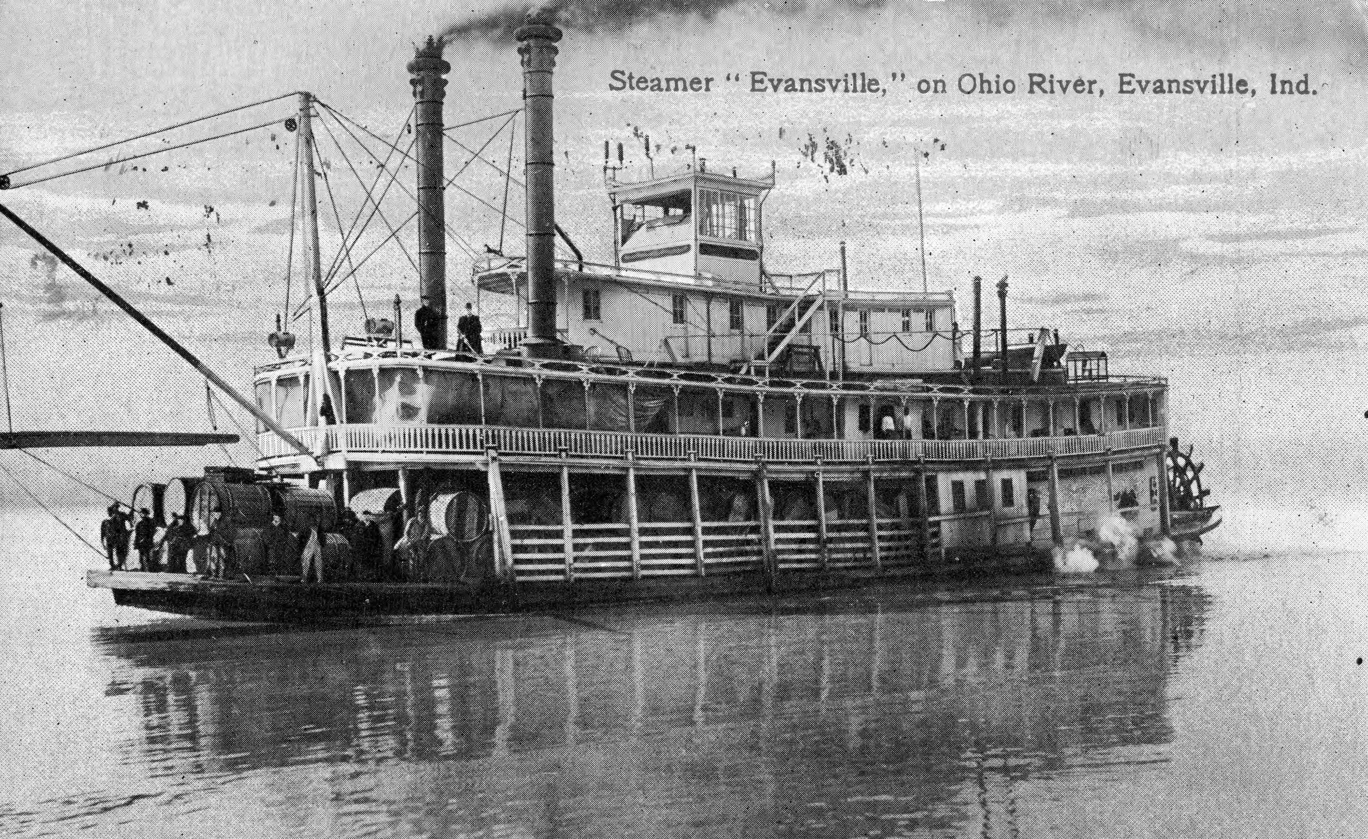 Steamboat, Evansville. This boat caught fire and sank in 1931 near the landing in Bowling Green, Kentucky.