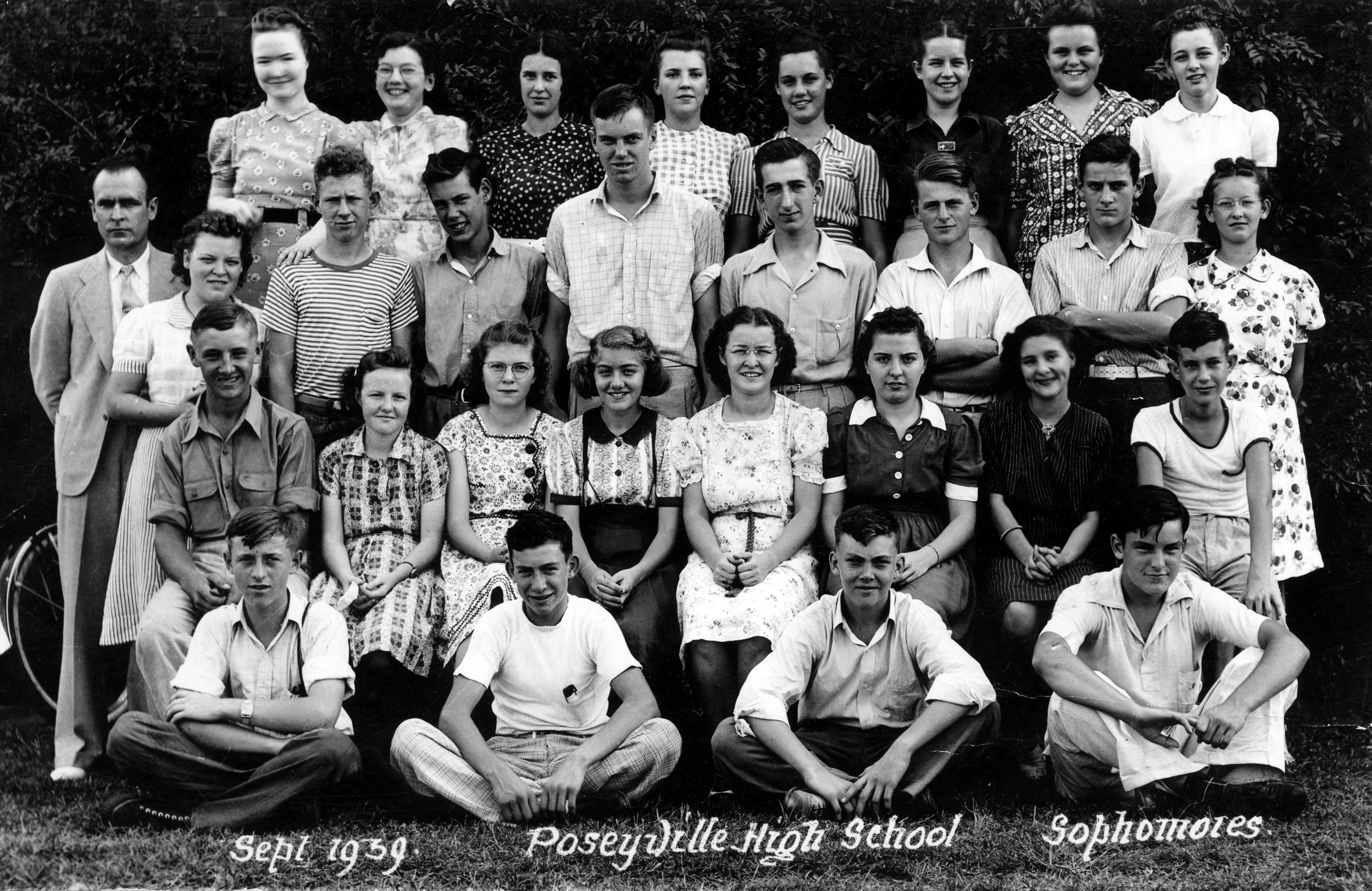 Poseyville High School sophomores. In 1959 the four separate schools of Poseyville, Cynthiana, Wadesville and Griffin consolidated into North Posey High School.