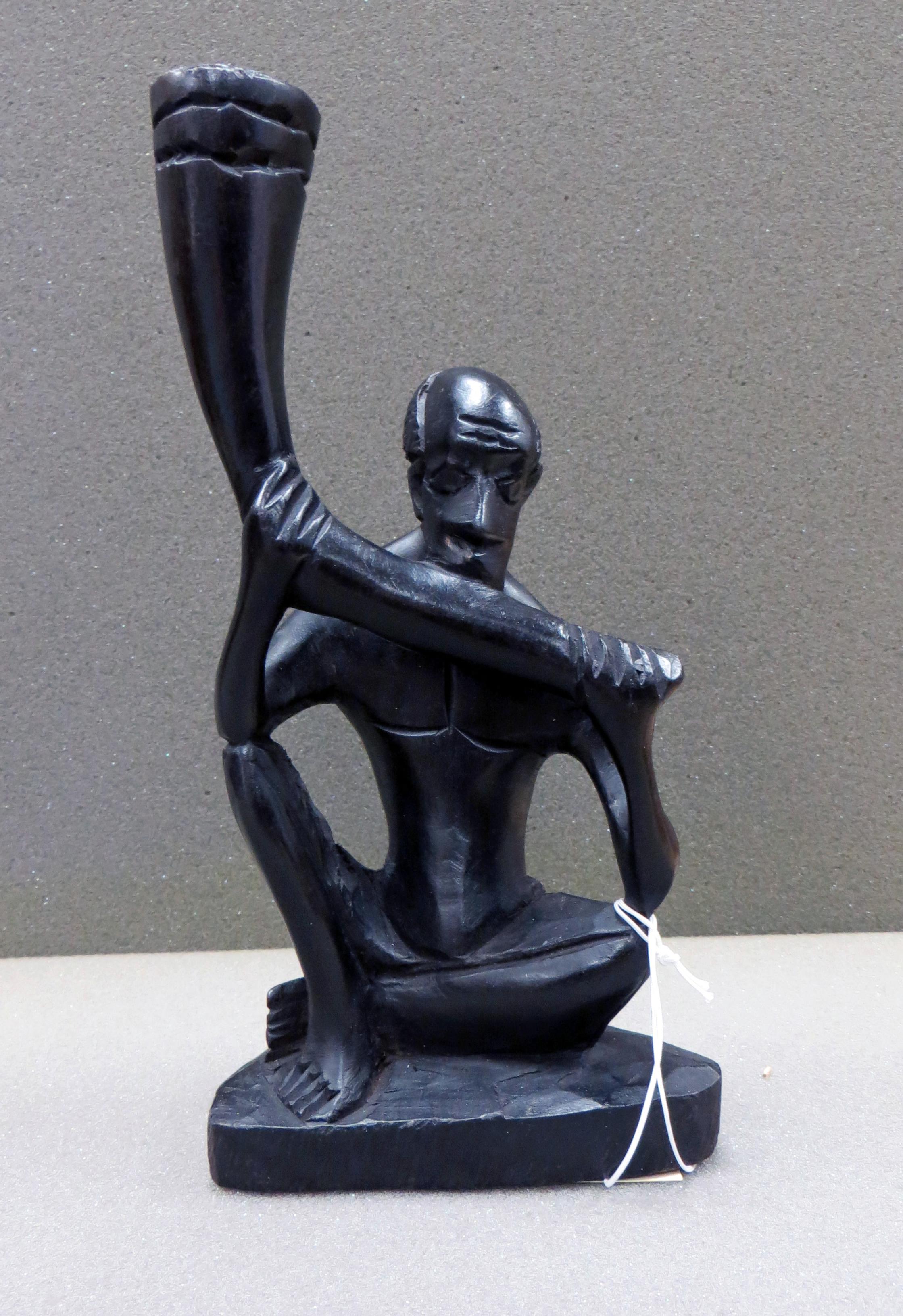 Thid sculpture is a man playing an instrument, maybe some sort of big flute perhaps. 22.5cm x 8.5cm dia.