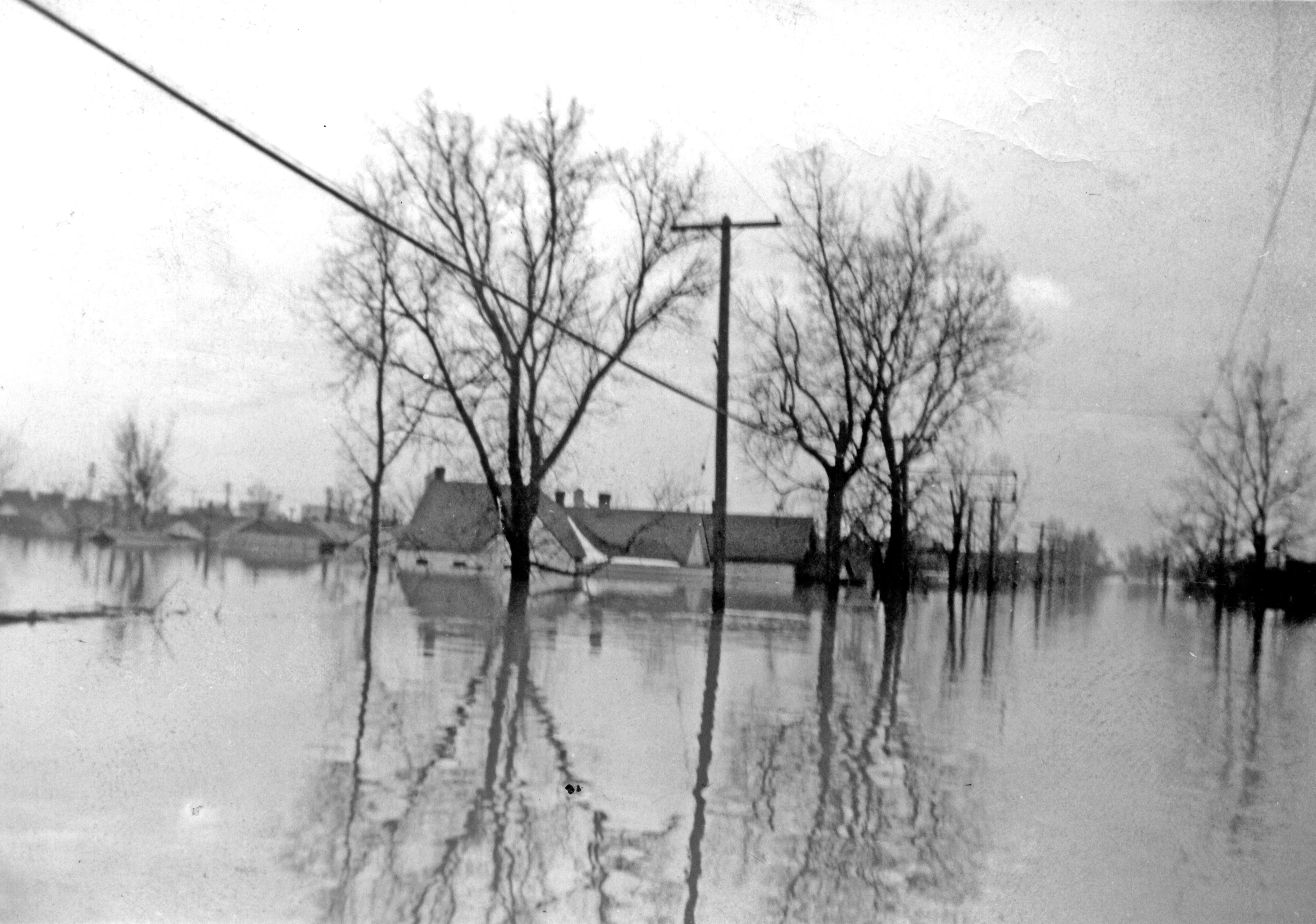 Flooded residences on unknown block of Barker Ave. with water up to eaves
