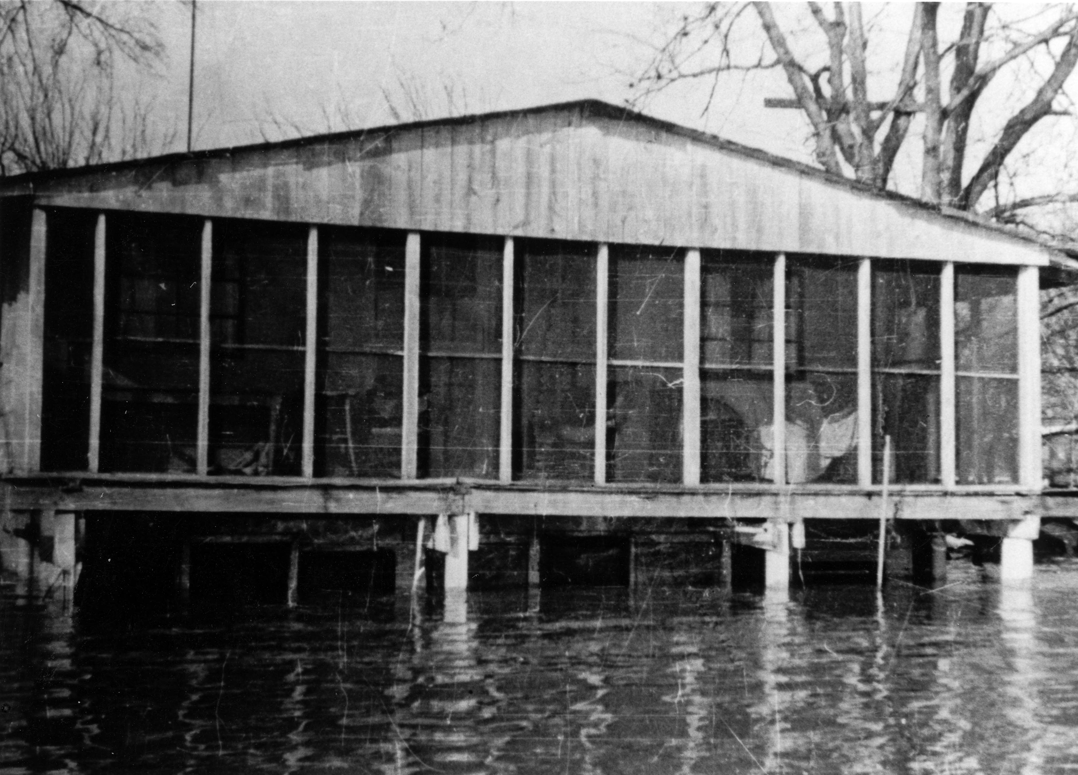 House on stilts with flooded yard. Screened in porch not covered in water. The river crested at 56.6 ft. in Newburgh, with flood stage at 38 ft.