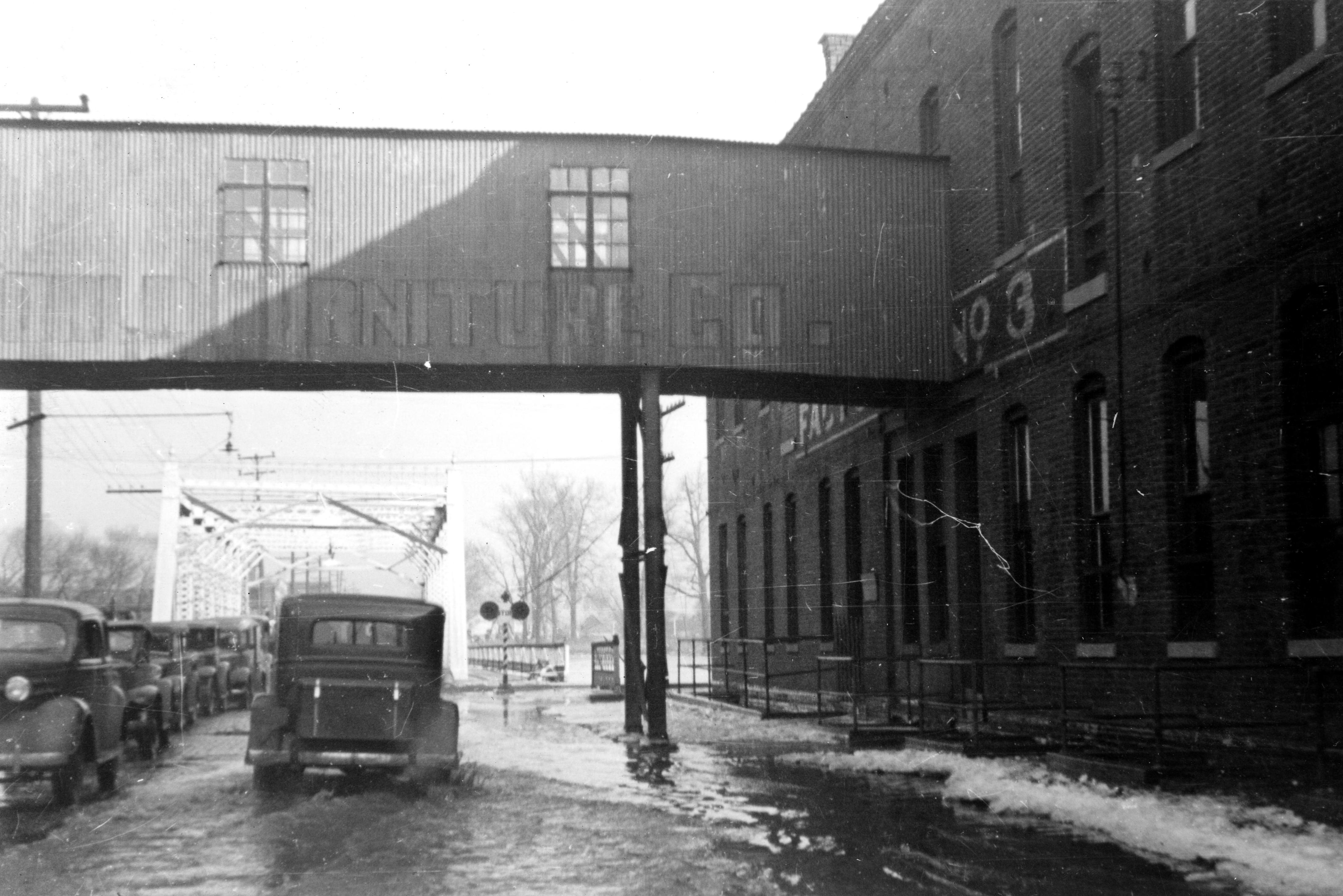 Factory on right is 1st Avenue Brick & Tile Co. right by bridge over Pigeon Creek, which has lots of cars crossing