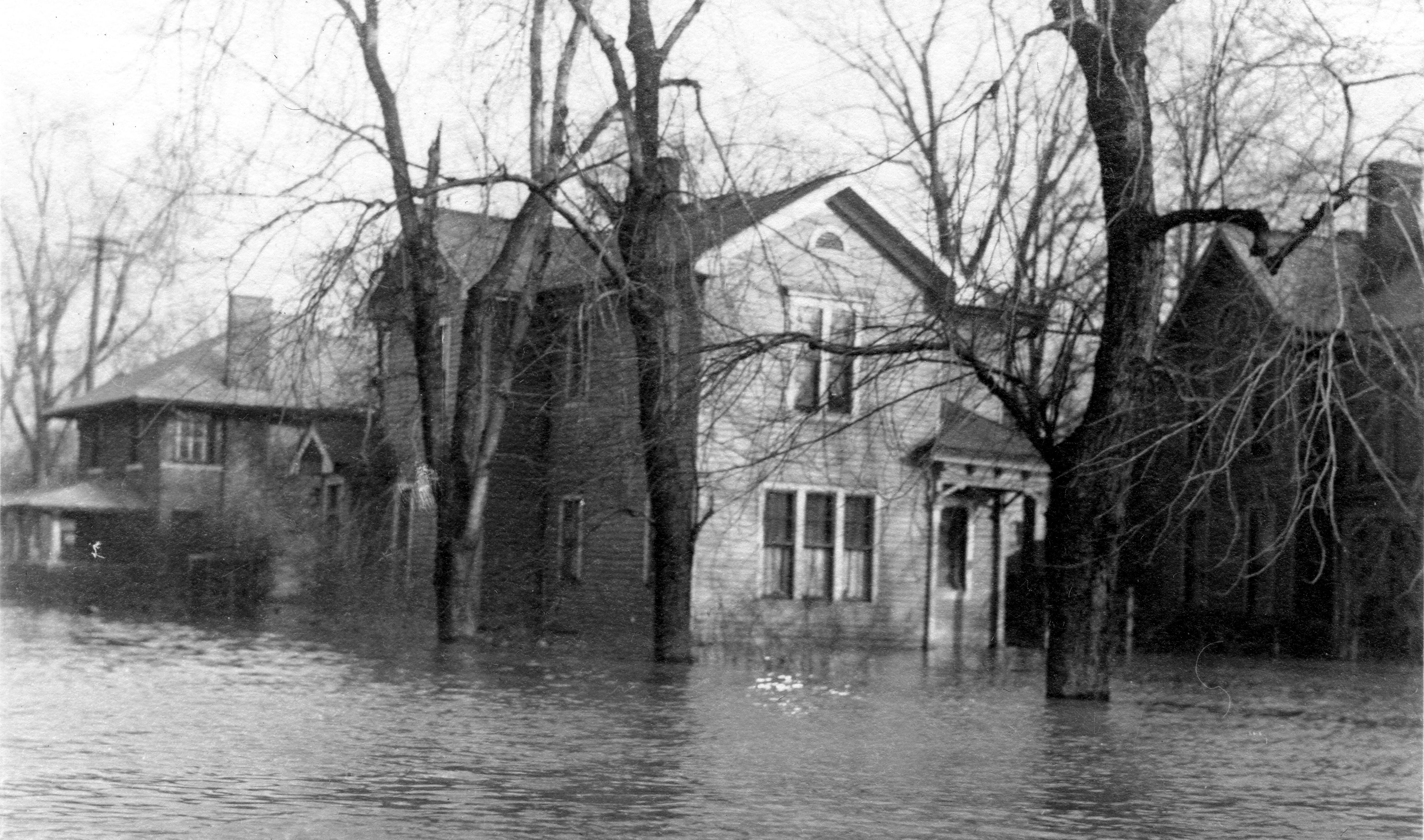 Large flooded residences around the intersection of SE 1st St. and Adams Ave. The Karl K. Knecht residence at 31 Adams Ave.is on the left.