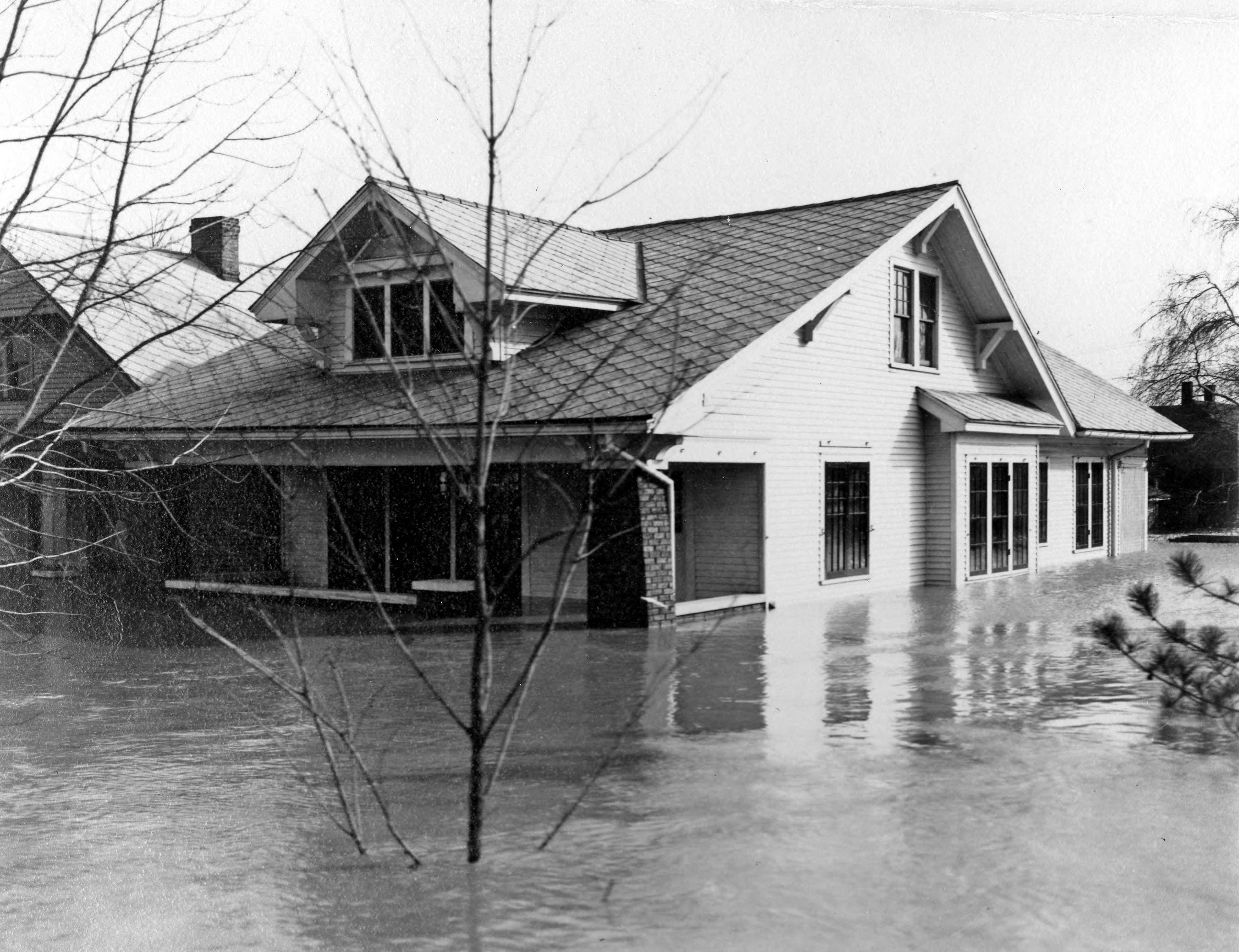 715 Waggoner Ave., the residence of Ed J. Fehn. Water is up to the top of the porch railing.