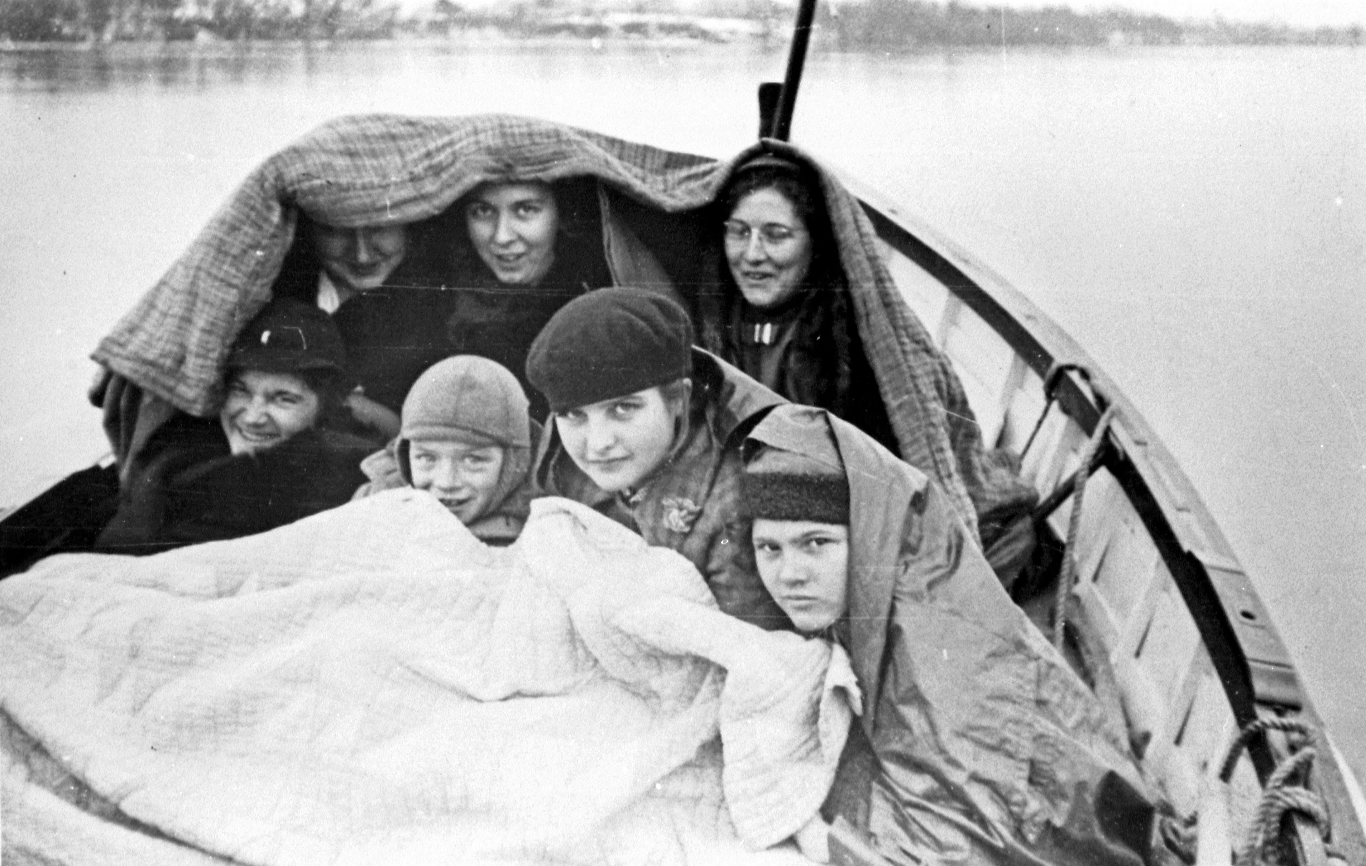 Coast Guard cutter with Point Township residents in route to Mt. Vernon, from left in front: Mildred Bennett, William Bennett, Mary Elliott Huges and Janet Wild Summers, from left in back: Elizabeth Muensterman Luigs, Ola Dixon Breiner and Emma Duley Walls