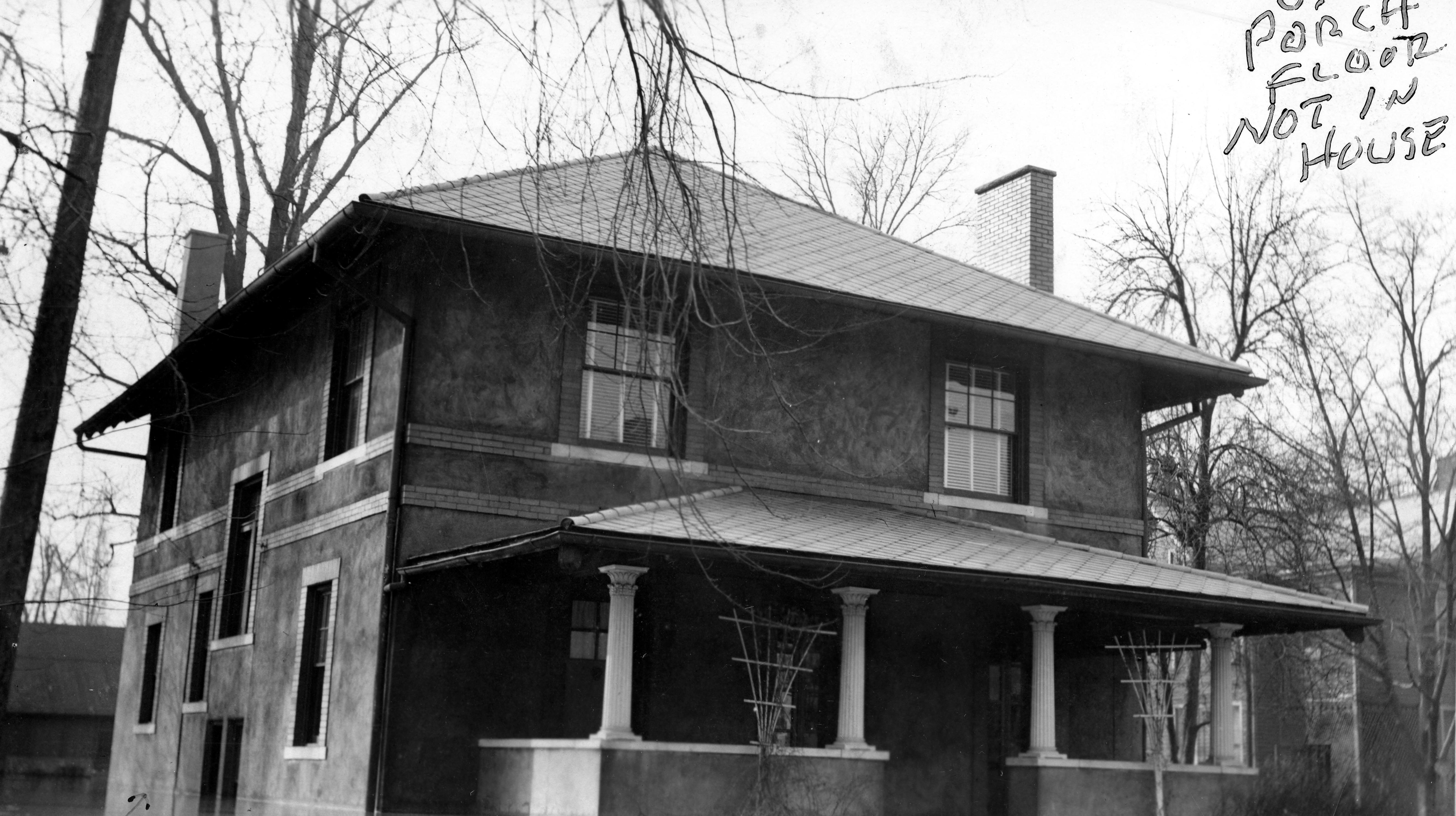 Close-up of residence of Karl K. Knecht at 31 Adams Ave., with annotation that water is on porch floor but not in house