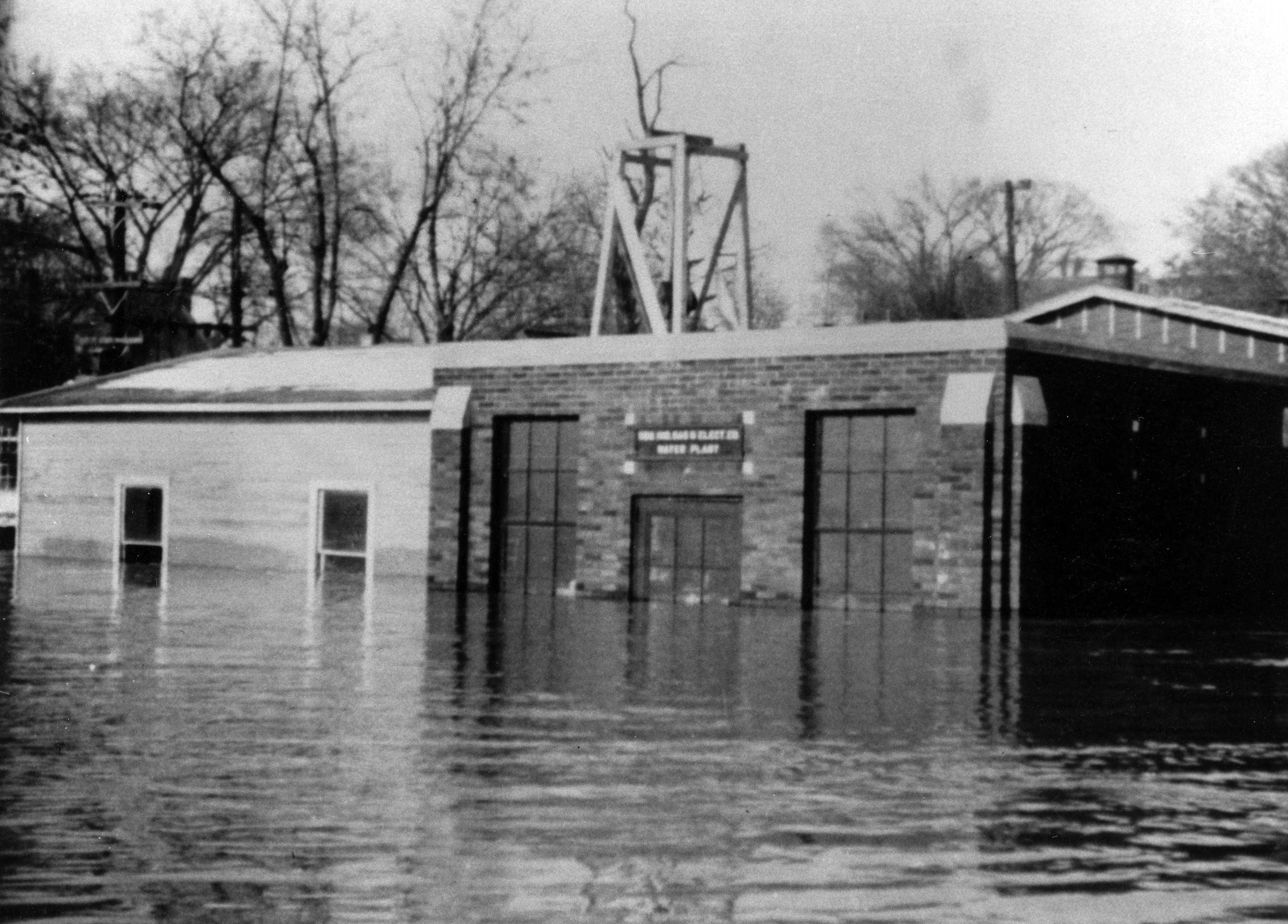 Flooded water treatment building. The river crested at 56.6 ft. in Newburgh, with flood stage at 38 ft.