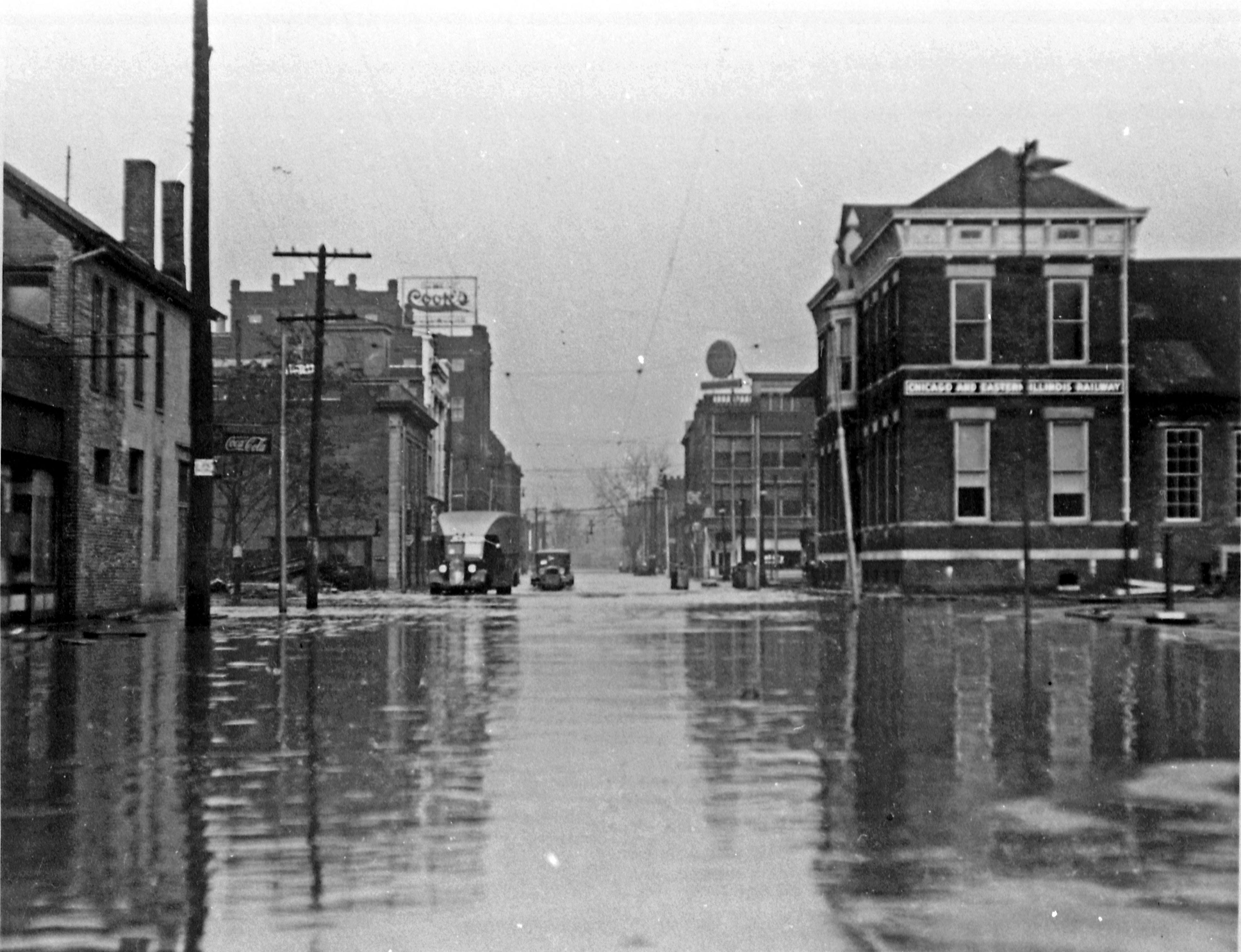 SE 8th St. and Locust St., looking towards 7th St., Chicago and Eastern Illinois Railroad at 28 SE 8th St., F. W. Cook Company brewers at 11 NW 7th St.