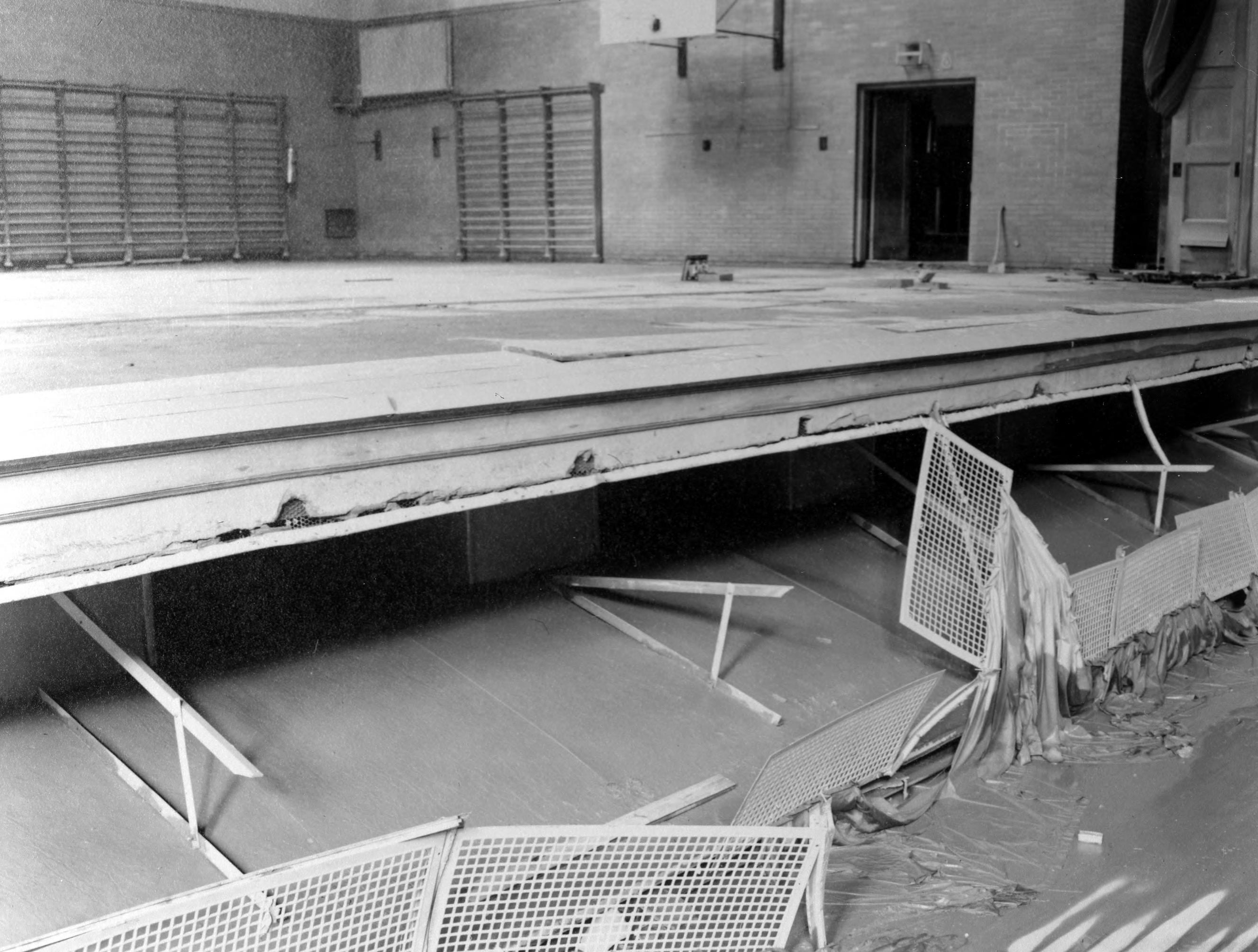 Damaged orchestra pit at Benjamin Bosse High School, 1300 Washington Ave.