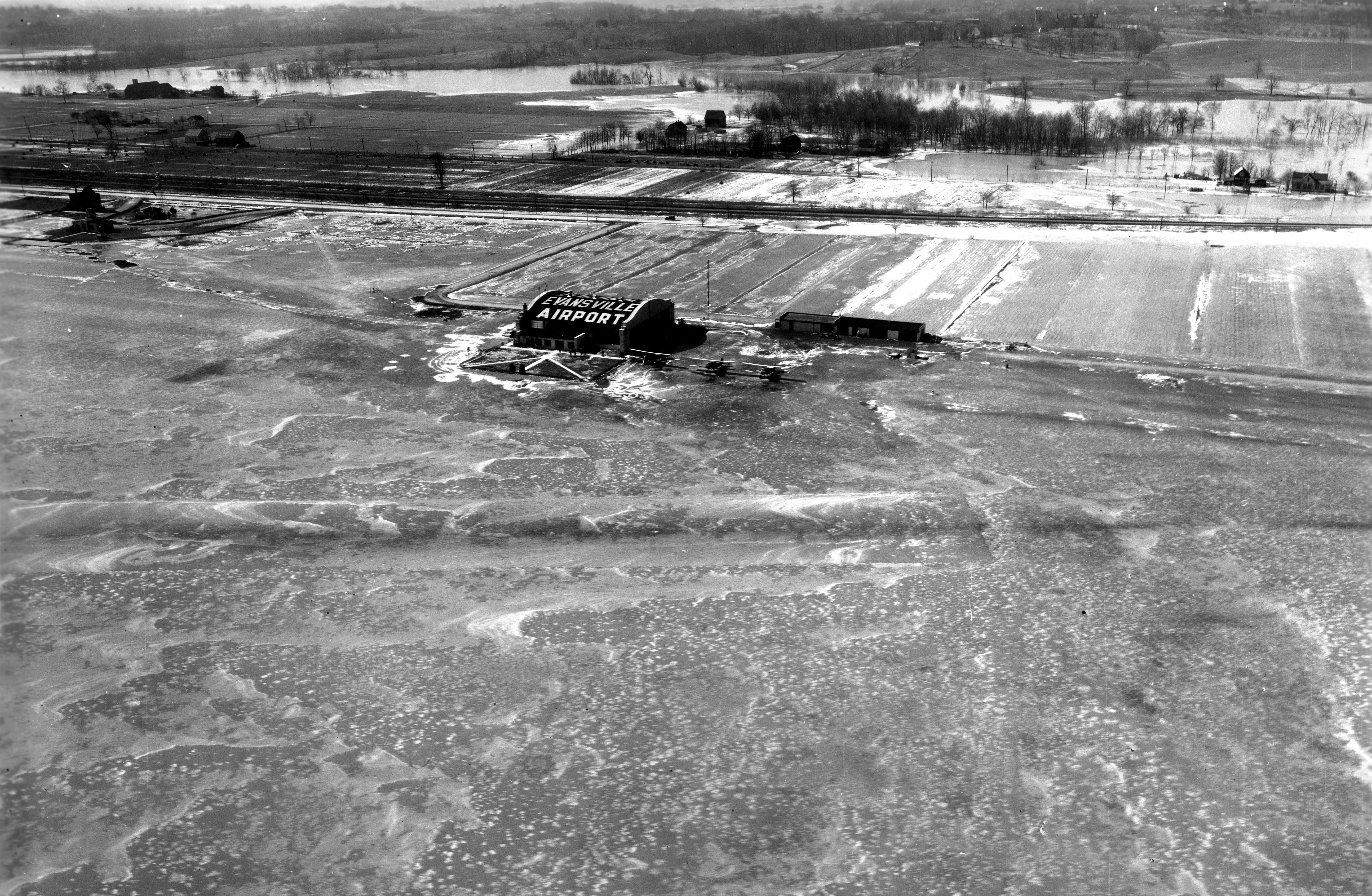 Aerial view of Evansville Municipal Airport. The airport was/is on Hwy. 41 N.