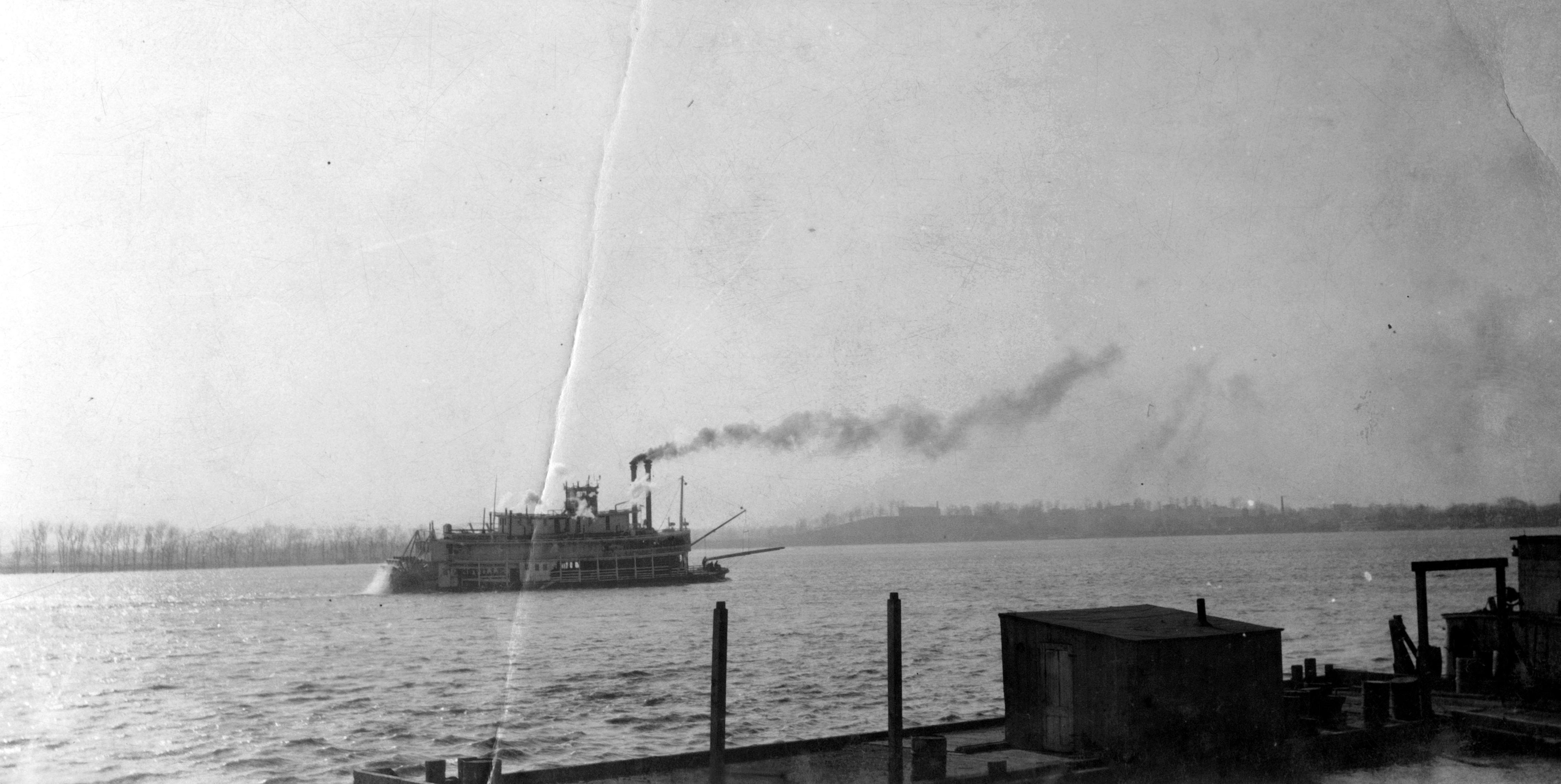 Paddle wheeler, the Neville (?), steaming along the Ohio River