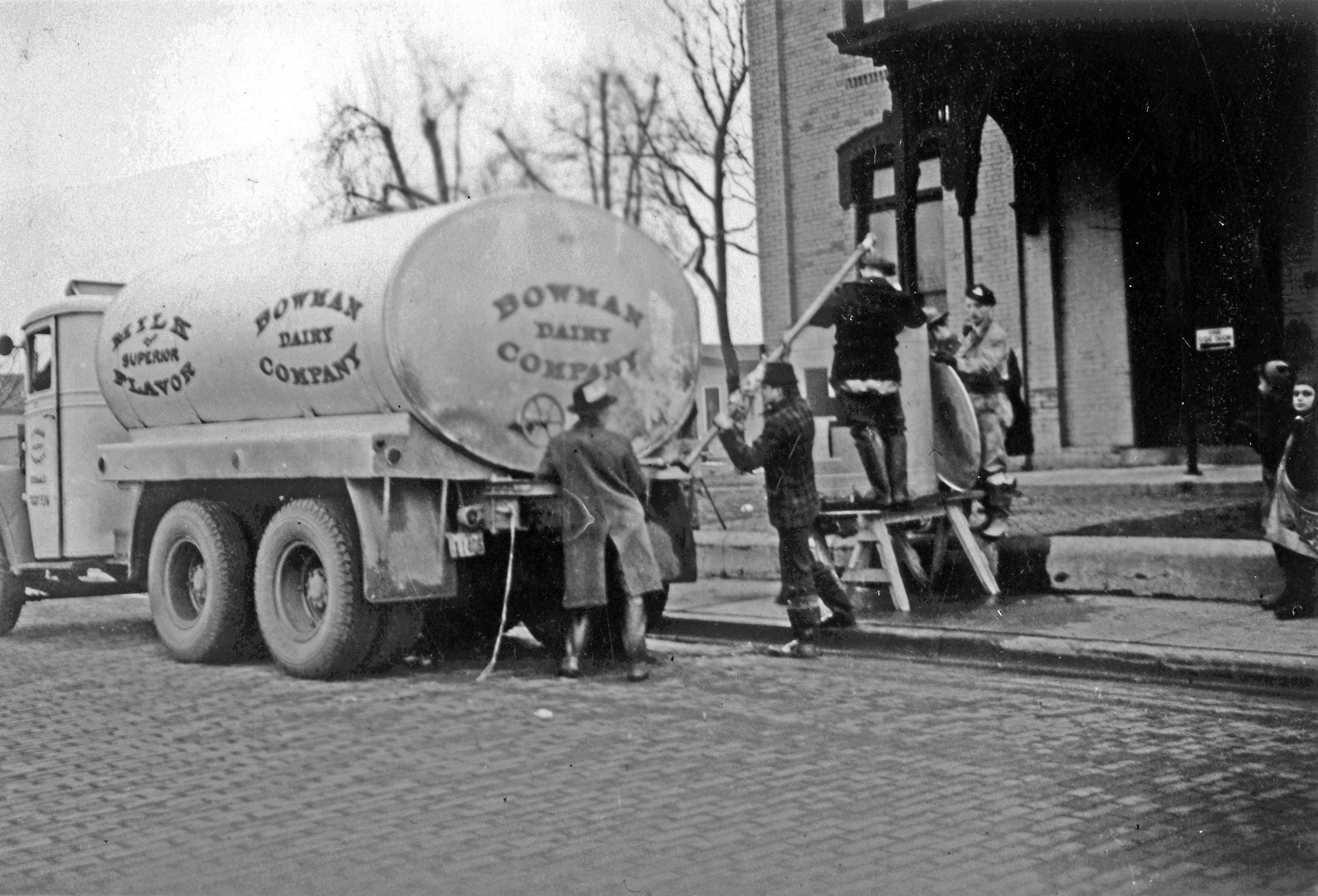 Bowman Dairy Truck delivering water to a building in Evansville, IN