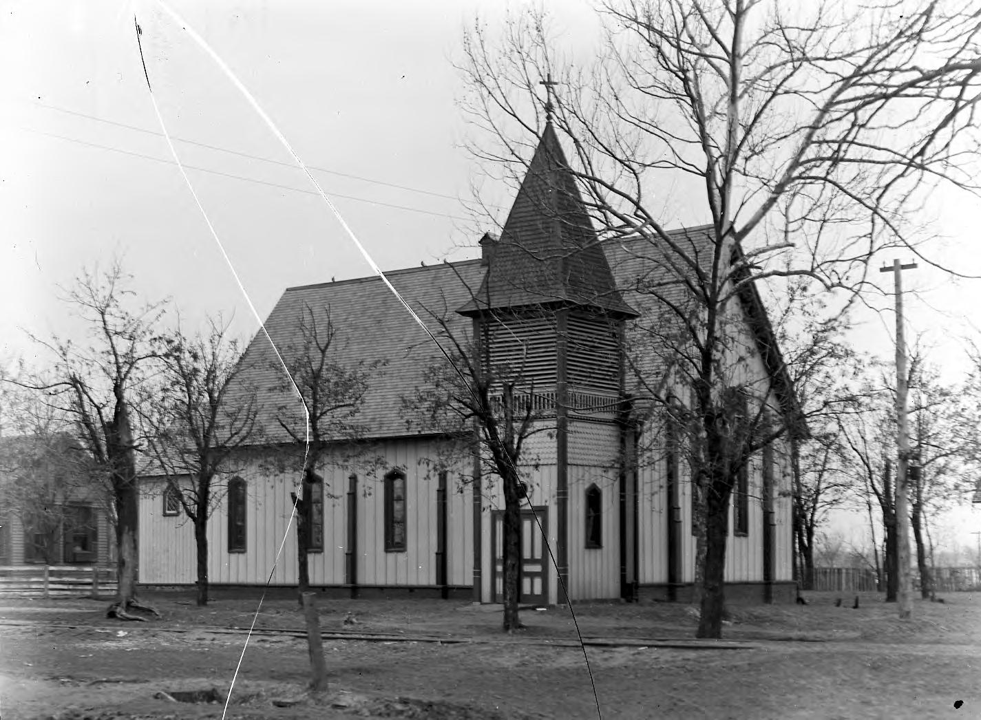 St. Stephen's Episcopal Church at 318 Main St.This church was consecrated June 14, 1855, but apparently before that the congregation used a portion of the old Rappite church. The church was rebuilt in 1911/1912, with a consecration on February 26, 1912. The building in this photograph is the pre-1912 building. Today's church does not resemble this at all.